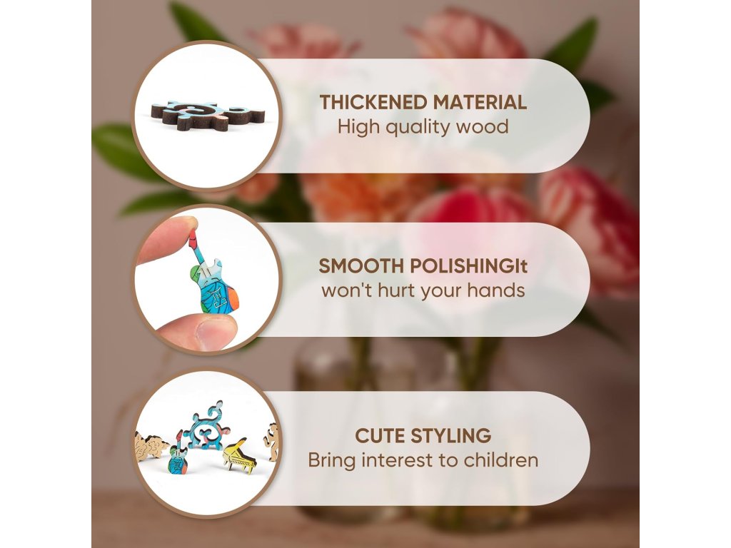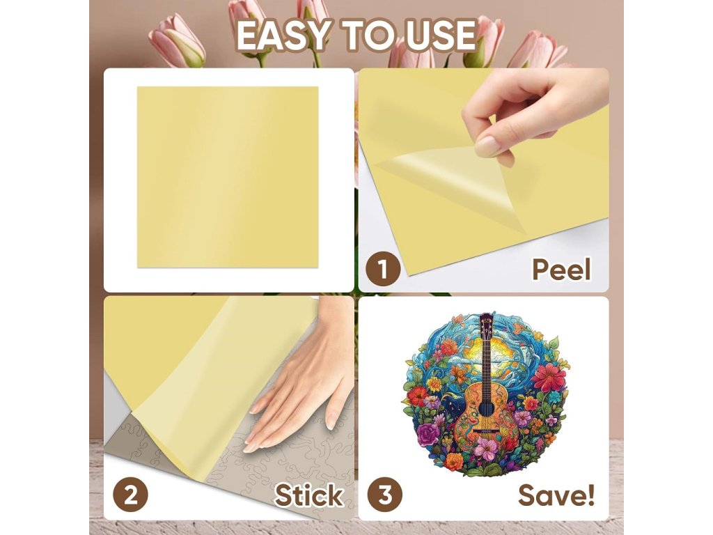 Puzzle s obrázkem kytary v květinách je unikátní dřevěné skládací puzzle, které spojuje kvalitní řemeslné zpracování s ekologicky odpovědným přístupem. Je vyrobeno z 5 mm FSC® certifikovaného dřeva, které zaručuje, že při výrobě byly dodrženy nejvyšší standardy ve správě lesů, což přispívá k udržitelnosti a ochraně biodiverzity. Každý z jedinečných 200 dílků skládačky je precizně vyřezán laserem, což zajišťuje dokonalou přesnost a hladkost hran, čímž usnadňuje skládání i manipulaci s dílky. Barevný a detailní obraz je reprodukován pomocí moderní technologie UV digitálního tisku, což přináší realistické a živé barvy do každého kousku skládačky. Toto puzzle je výzva pro všechny milovníky skládaček, kterým poskytne hodiny zábavy. Je také dobrou příležitostí, jak dát dohromady celou rodinu a přátele. Složený obrázek může sloužit jako krásný a dekorativní doplněk pro Váš prostor. Balení obsahuje: 200 dílků puzzle, úložný box, fólii na podlepení, samolepky pro montáž na zeď, návod. Hlavní vlastnosti: obsahuje 200 jedinečných dílkůUV digitální potiskprémiová kvalita puzzle 100% FSC® dřevodílky precizně vyřezány laseremrozvíjí logické myšlení a motorikusoučástí balení fólie na podlepení puzzleunikátní tvary a designSizing info