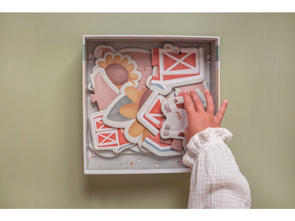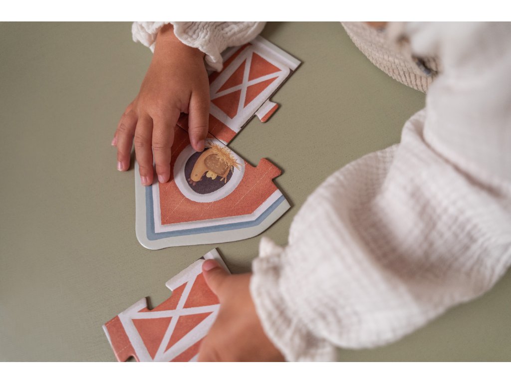 Sada obsahuje 6 variant puzzle skládaček pro nejmenší s krásnými ilustracemi ze života na farmě. Jednotlivé skládačky mají 3, 4 nebo 5 dílků z pevného kartonu, které jsou dokonale tvarované pro malé dětské ručičky. Hračka je součástí designové kolekce hraček a doplňků Little Dutch Farma. Puzzle rozvíjí jemnou motoriku dítěte i dovednosti jako řešení problémů, trpělivost a rozpoznávání tvarů. Rozměry boxu: 21,5 x 21,5 x 5,1 cm Vhodné pro děti od 2 let.Doplňkové parametry