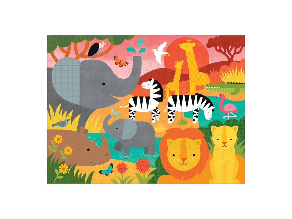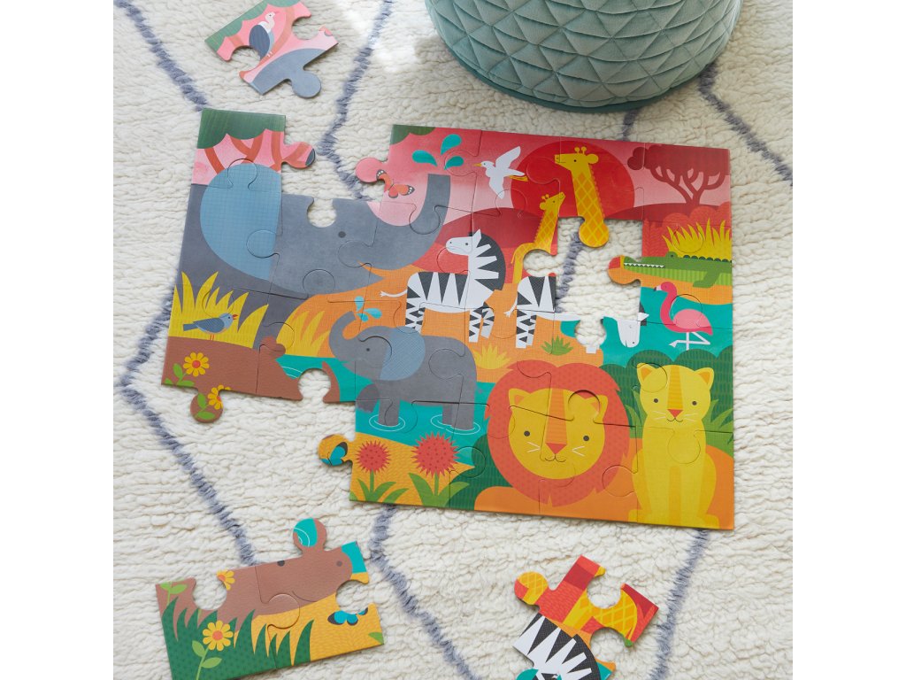 Puzzle pro všechny milovníky safari. Při jeho sestavování se může dítě učit vše o safari světě. Dílky jsou velké a robustní, skládačka je určena ke hře na podlaze. Baleno v praktické krabičce z recyklovaného kartonu, vybavené provázkovým uchem. Hlavní vlastnosti: 24 dílkůpraktické baleníSizing info