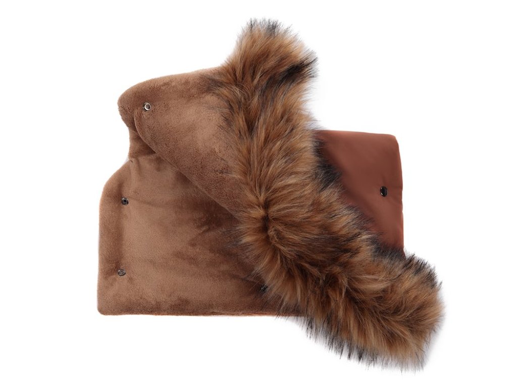 Rukávník díky vnějšímu nepromokavému materiálu a výplni z rouna ochrání ruce před chladem, větrem, mrholením. Ruce jsou v teple i bez rukavic. Vnitřní velvet je hřejivý a příjemný. Rukávník Luxury má jako doplněk designovou kožešinku.