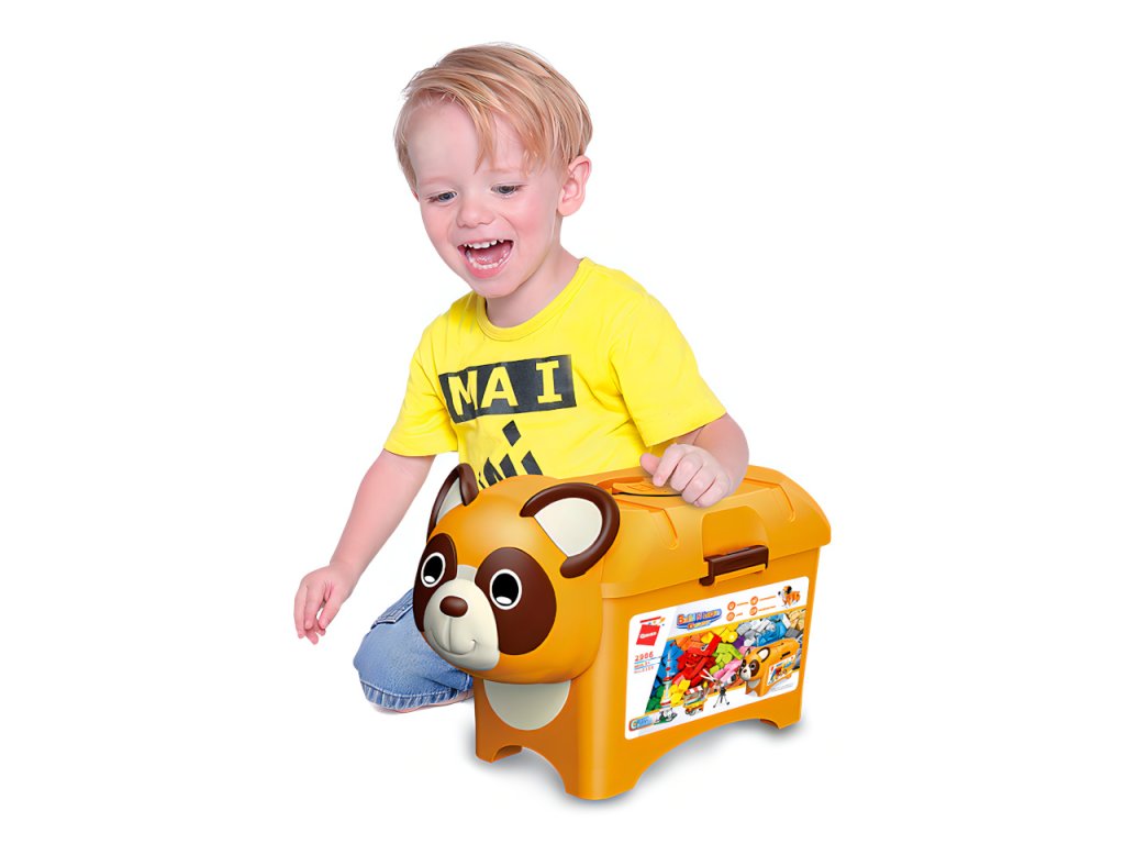 Úložný box se díky roztomilé zvířecí masce promění v zářivou ozdobu dětského pokoje. Je plný pestrobarevných stavebních kostek rozmanitých tvarů. Díky několika úchytkám a madlu je snadno přenosný, jeho víko lze i zajistit, aby se obsah při transportu nevysypal. Vysoce variabilní stavebnice Qman z pestrobarevných plastových kostiček lze kombinovat s podobnými stavebnicemi mnoha dalších významných výrobců. Vyrobeno z kvalitního, nezávadného a odolného, ABS plastu. Hlavní vlastnosti:975 dílkůpraktické i okrasné baleníkompatibilní se stavebnicemi dalších výrobcůSizing info