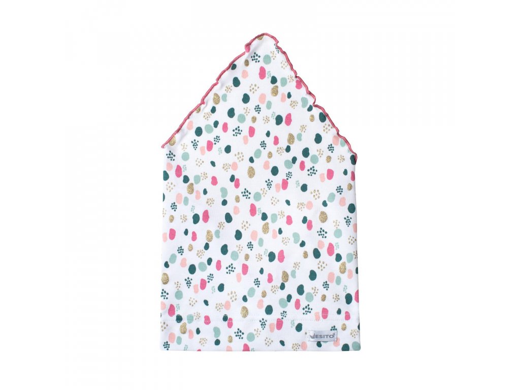 Výhody: - moderní snadno udržovatelný materiál dětského šátku na hlavu se vzorem Třpytka - velmi příjemný materiál na nošení, pohodlné navlékání i svlékání - jednoduchý střih dívčího šátku na hlavu, který velmi dobře sedí - vysoce kvalitní digitální potisk zářivými neonovými barvami - krásně pružný materiál Použití: - jaro, léto, podzim Určení: - pro holky od cca 3 měsíců do cca 7 let viz. velikosti - JARO, LÉTO, PODZIM Materiál: - 95 % bavlna, 5 % elastan Velikosti: - vel. 36 - obvod hlavy od 36 do 38 cm - vel. 38 - obvod hlavy od 38 do 40 cm - vel. 40 - obvod hlavy od 40 do 42 cm - vel. 42 - obvod hlavy od 42 do 44 cm - vel. 44 - obvod hlavy od 44 do cca 50 cm - velikost udává obvod hlavy v cm Bezpečnost: - atestované materiály pro malé děti - bez šňůrek na zavazování Údržba: - praní v pračce při teplotě do 40°C - viz. etiketa na výrobku Záruka kvality: - výrobek je navržen, vyroben a zabalen na území Česka - jedná se tedy o 100% český výrobek té nejvyšší kvality - samozřejmostí je dvouletá záruka - značkový výrobek ESITO® Kvalitní český výrobek. Vyrobeno s péčí a láskou k dětem v podhůří Orlických hor. Rodinná firma ESITO je 100% český výrobce s vlastním vývojem a stylem. Její prioritou je nejvyšší možná kvalita, funkčnost, praktičnost a zároveň dobrá cena.Doplňkové parametry