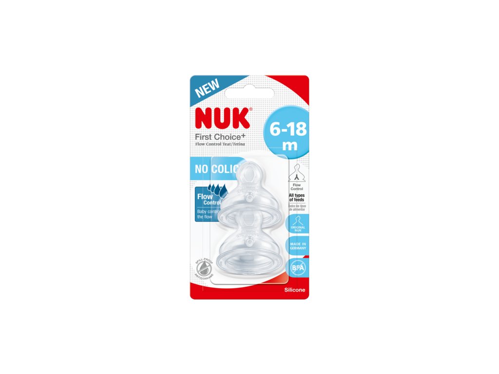 Dudlík Flow Control pro láhev NUK First Choice +:• extrémně měkká bradavka přizpůsobená tvaru dutiny ústní