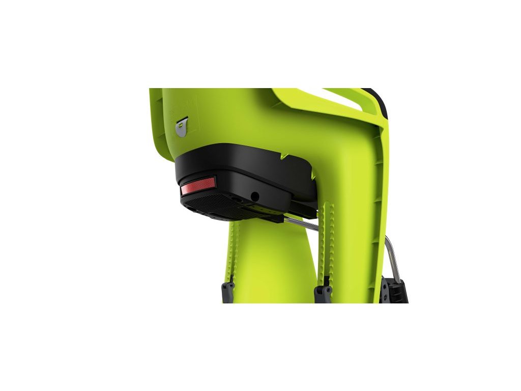 Sedačka má nastavitelné polstrované popruhy, díky nimž bude dítě v maximálním bezpečí a jako v bavlnce. Systém odpružení DualBeam tlumí nárazy a zaručuje pohodlí dítěte během jízdy. Sedačku lze sklápět jednou rukou, a to až o 20°. K dispozici je pět různých variant nastavení náklonu. Díky řemínkům k uchycení bot, které lze uvolnit a utáhnout jednou rukou, a díky možnosti nastavení opěrek nohou je sedačka velmi praktická a roste spolu s dítětem. Sedačka má univerzální rychloupínací držák, pomocí něhož se na kolo upevní během několika sekund a stejně rychle sejme. Lze ji namontovat na většinu rámů kol (kulaté rámy o průměru 27,2–40 mm a oválné rámy s profilem o velikosti max. 40 x 55 mm). Bezpečnostní popruh zajišťuje přezka s velkými tlačítky, kterou dítě nedokáže uvolnit. Měkká vložka má vodoodpudivou úpravu a je oboustranná, přičemž každá strana je jinak barevná. Lze ji vyjmout a vyprat. Sedačka je vybavena odrazkou a očkem pro uchycení bezpečnostního světla, aby bylo kolo lépe vidět i za ztížených podmínek. Sedačku lze uzamknout pomocí systému jednoho klíče Thule (zámek se dodává spolu s ní). Sedačka je navržena a testována pro převážení dětí ve věku od 9 měsíců* do 6 let o hmotnosti do 22 kg. Odpovídá mezinárodním bezpečnostním normám.Doplňkové parametry