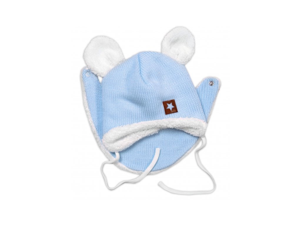 Pletená zimní čepice s kožíškem a šátkem Star, modrá