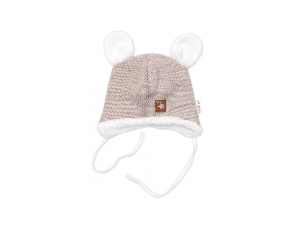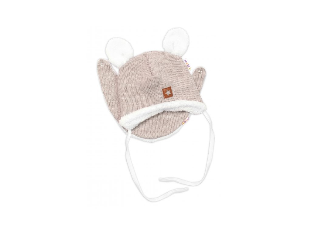 Pletená zimní čepice s kožíškem a šátkem Star, béžová