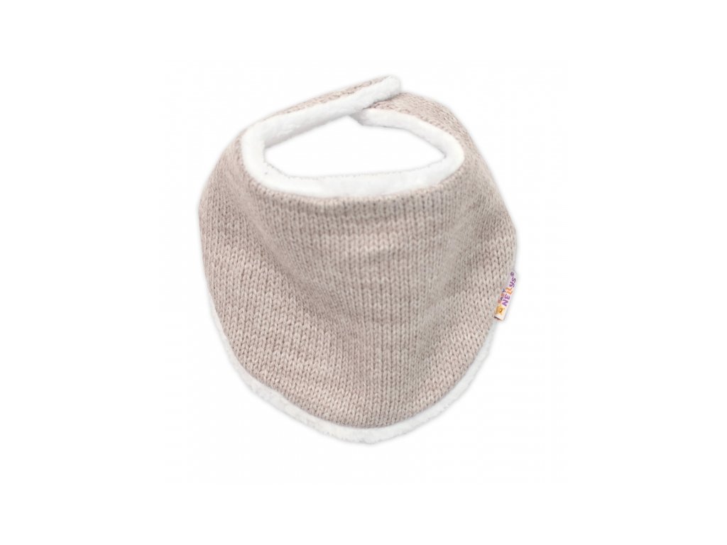 Dvouvrstvá zimní pletená čepice na zavazování, zateplená kožíškem v sadě s šátkem.Sada obsahuje:Čepičku a šátek.