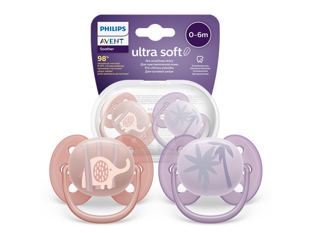 AVENT SCF091/09 Dudlík Ultra Soft 0-6m słon/palma