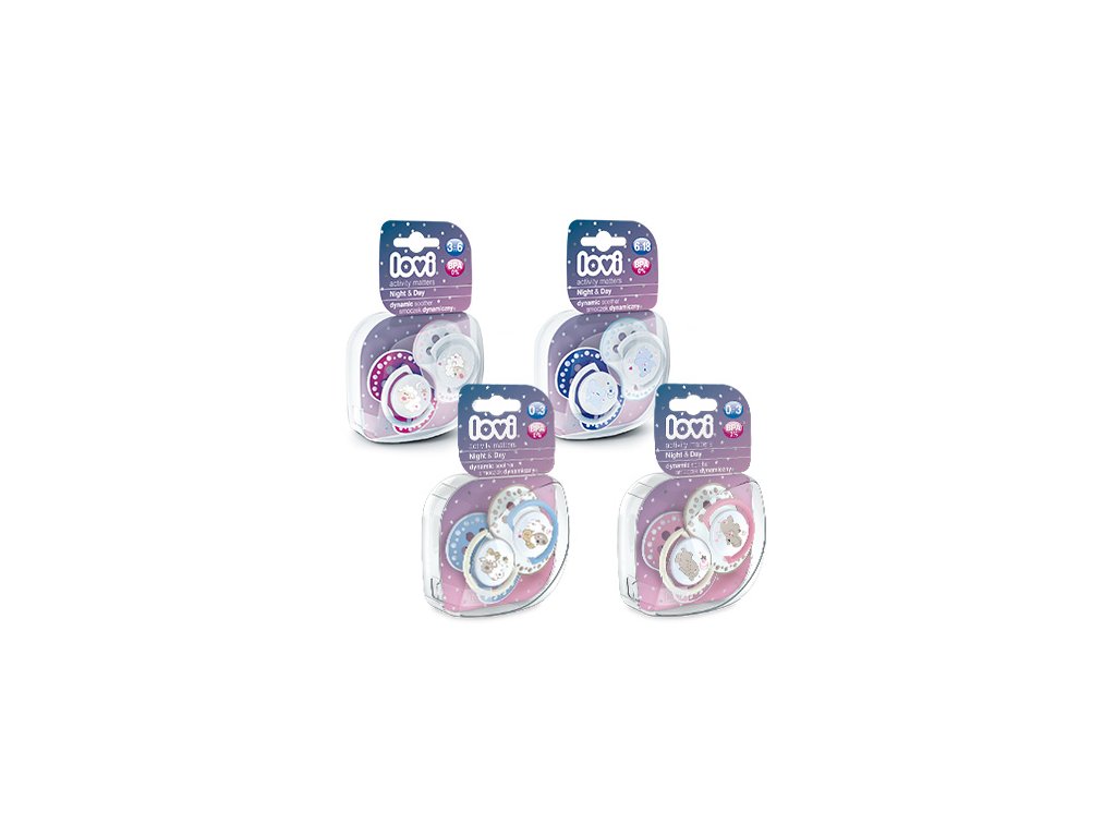 Vsuvky jsou dostupné ve 3 věkových kategoriích 0-3, 3-6 a 6-18, díky čemuž se velikost silikonové hlavice lépe přizpůsobí měnící se tváři miminka.