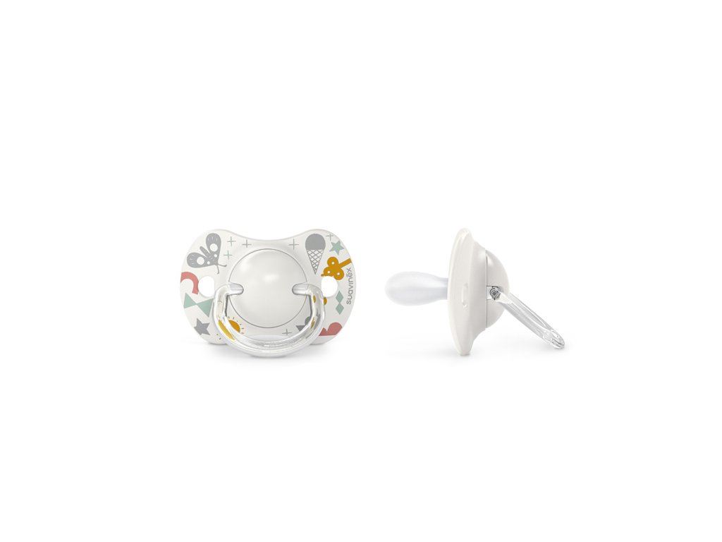 Je velkým pomocníkem pro klid vás i vašeho miminka, ať již při spánku nebo na vycházce. Je dokázáno, že sání dudlíku uvolňuje endorfin, takzvaný hormon štěstí, který přináší dítěti příjemný konejšivý pocit. Dopřejte dítěti dudlík místo prstů či pěstičky, protože tento způsob uklidňování může velmi porušit budoucí dentální vývoj. Veškeré savičky i dudlíky jsou podpořené a vyráběné ve spolupráci s Asociací španělských dětských ortodontistů a respektují přirozený vývoj dásní, zubů i patra dítěte.