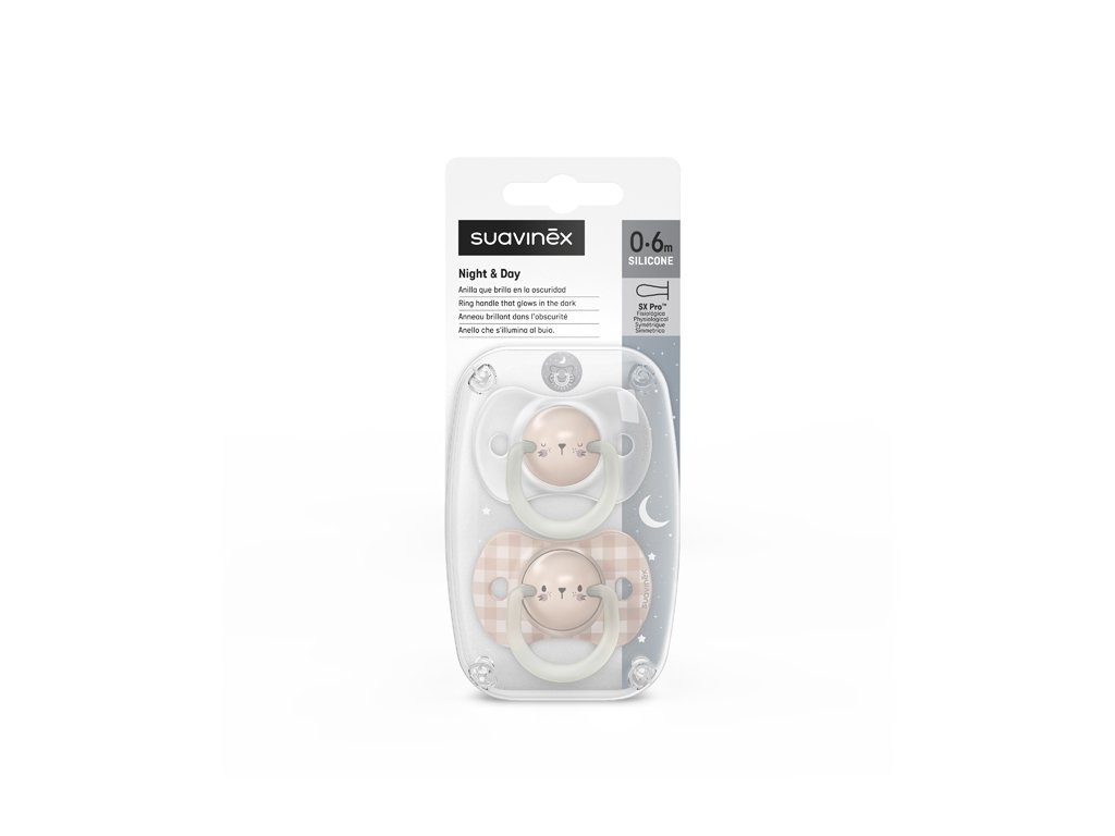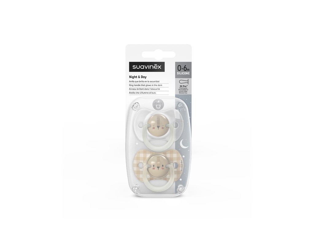 SAUVINEX SUAVINEX | Šidítko DEN&NOC fyziologické silikon 0-6 m - 2 ks - krémový lev
