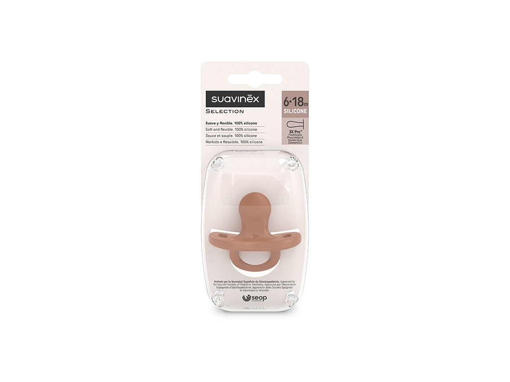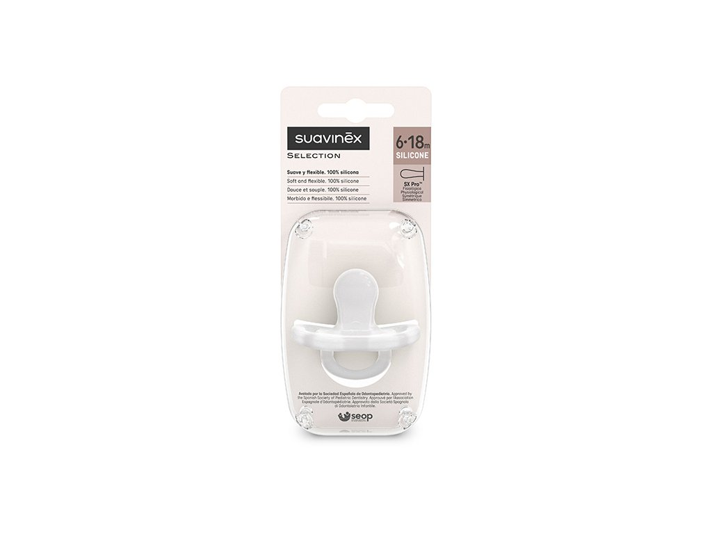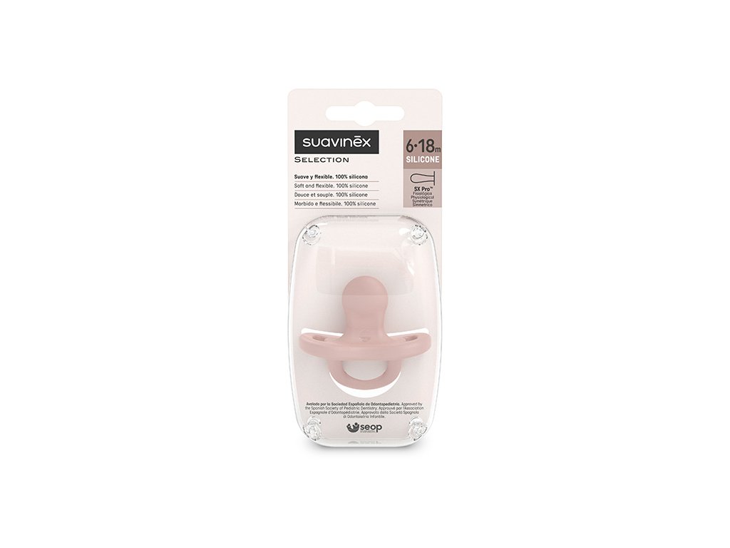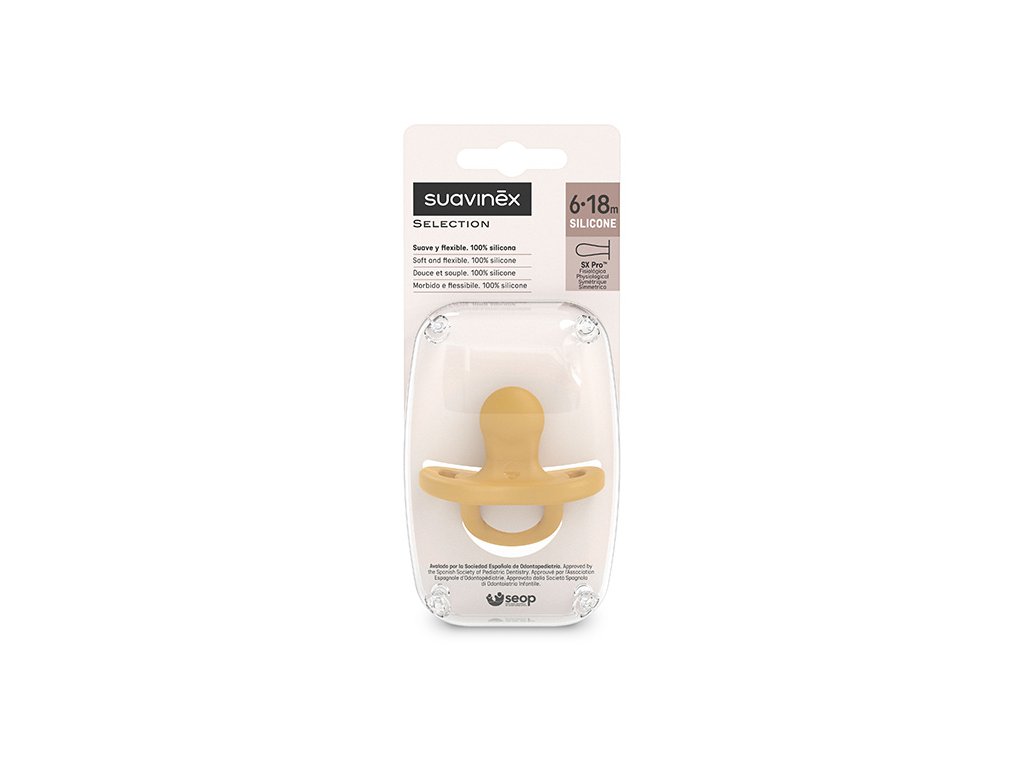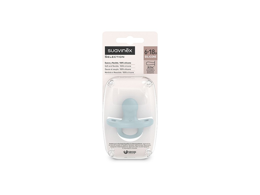 Měkoučký celosilikonový dudlík Colour essence sx pro od značky Suavinex v pastelových barvách - vyroben z jednoho kusu silikonu, s ergonomickým štítkem, který se přirozeně adaptuje s potřebami dětí, bez chuti a bez zápachu. Ponechává jazyku více místa v dutině ústní, aby bylo sání co nejpřirozenější.