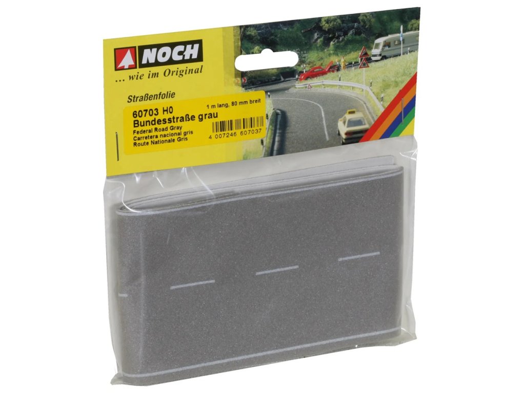 Co bychom si jen počali bez silnic! Pro rychlou jízdu autem z bodu A do bodu B je tato silniční síť jako stvořená. Silnice vede malebnou krajinou a jízdu si tak lze skutečně užít. Lidé ji denně využívají, aby dorazili do cíle. Vytvořte si i na svém kolejišti realistické silniční scény s ještě větší mírou detailu a oživte je pomocí modelu silnice. Rozdíl oproti skutečnosti je téměř nerozeznatelný. Se silniční fólií zvládnete každou zatáčku. Realistická výstavba silnic je díky této fólii mimořádně jednoduchá. Je odolná, pružná a samolepicí a snadno se aplikuje. Je dostupná v různých šířkách i jako univerzální zatáčka, křižovatka či parkoviště, a také v provedení s dlažebními kostkami. Fólie je nabízena v barvách asfalt a šedá, a to pro měřítka H0, TT a N. Hlavní vlastnosti: samolepícíjedná se o model, nejedná se o hračkuvhodné od 14 letměřítko H0Sizing info