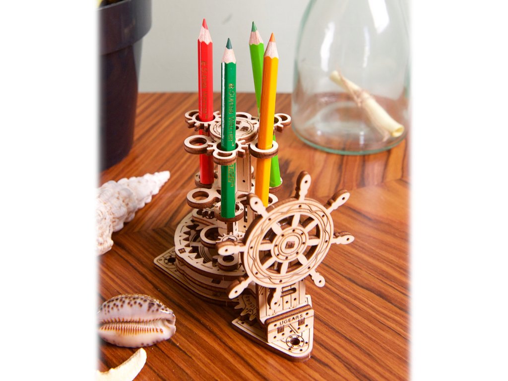 Ugears 3D dřevěné mechanické puzzle Organizér na psací potřeby