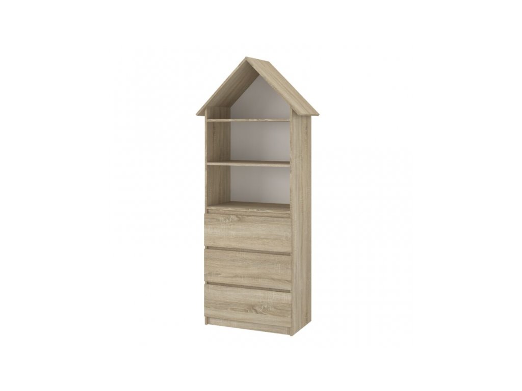 Dřevěná knihovna/skříň na hračky Nellys Domeček A3, Dub Sonoma