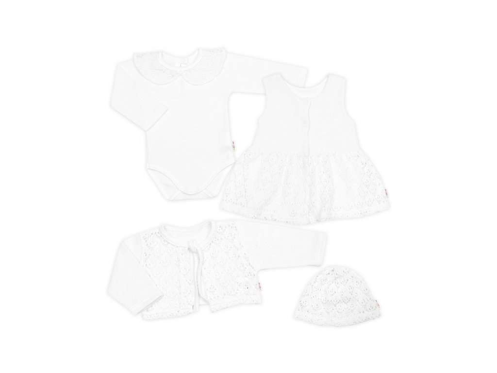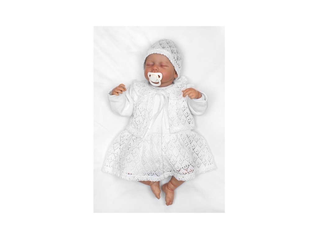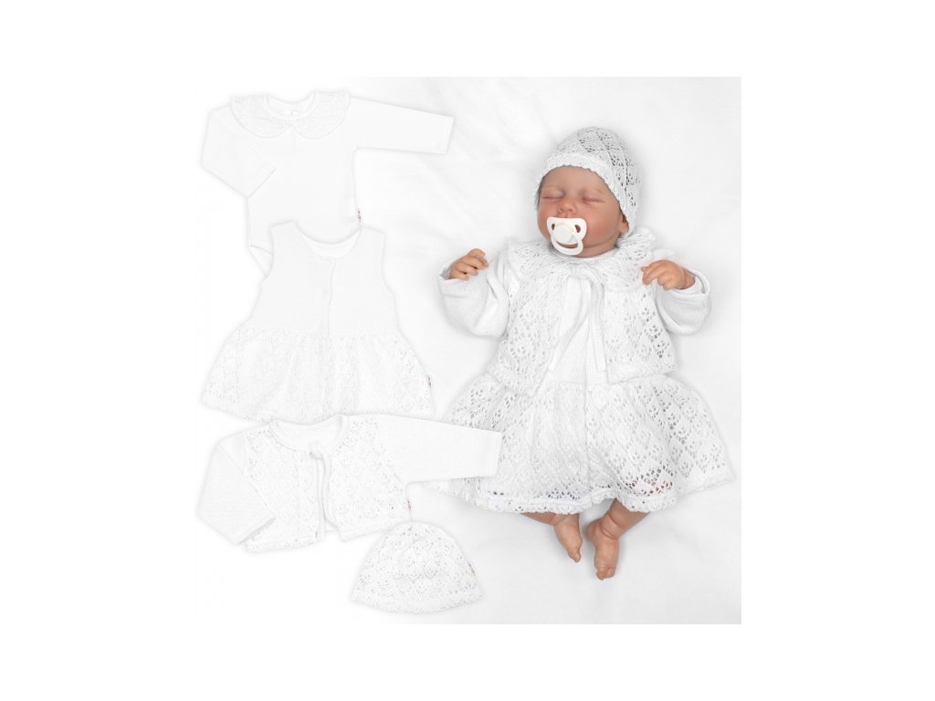 Luxusní pletená sada pro holčičku na křtiny a oslavu 4D design - bílá