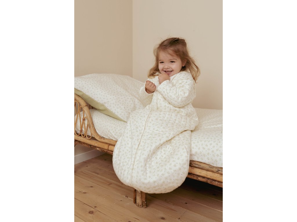 Praktický spací pytel s oddělitelnými rukávy nabízí variabilitu při použití dle počasí a teploty v místnosti. Díky jemné výplni je vhodný pro použití místo peřinky. Spací pytel zajistí, že se dítě v noci neodkope a bude tak po celou dobu spánku v pohodlí a teple bez rizika prochladnutí. Kryté zipy v průramcích umožňují snadné oddělení rukávů, pokud chcete spací pytel používat v teplejším prostředí bez rukávů. Zip na přední straně umožňuje snadné vložení dítěte do spacího pytle i přebalování během spaní. Spací pytel je testován na TOG hodnotu, která určuje hřejivost spacích pytlů a dek. Čím vyšší je hodnota TOG, tím je produkt teplejší. Spací pytel má hodnotu TOG 2,5, jedná se tedy o spací pytel vhodný pro celoroční použití. Spací pytel je součástí designové kolekce textilních doplňků Little Dutch Blueberry Leaves. Složení: 100% bavlna, výplň 100% polyester Vhodné pro děti od 60 do 76 cm (cca od 3 do 9 měsíců).Doplňkové parametry