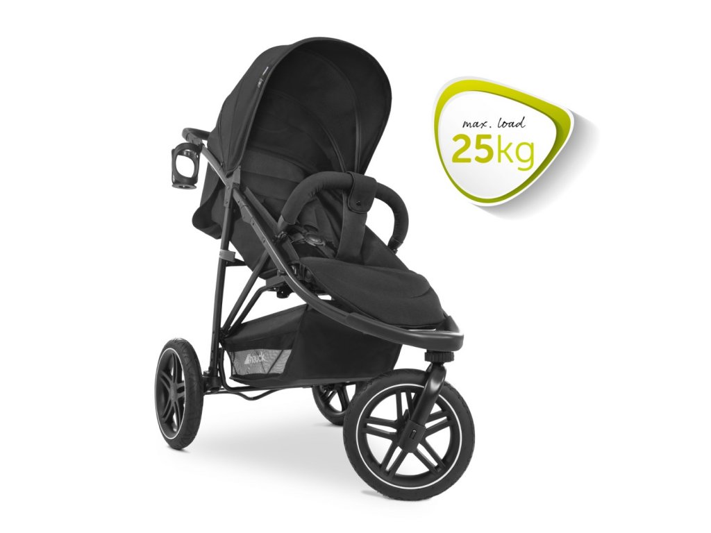 Pro pohodlnější odpočinek můžete nastavit opěrku zad a podnožku do polohy vleže. Dětské potřeby se během jízdy snadno uskladní ve velkém koši.