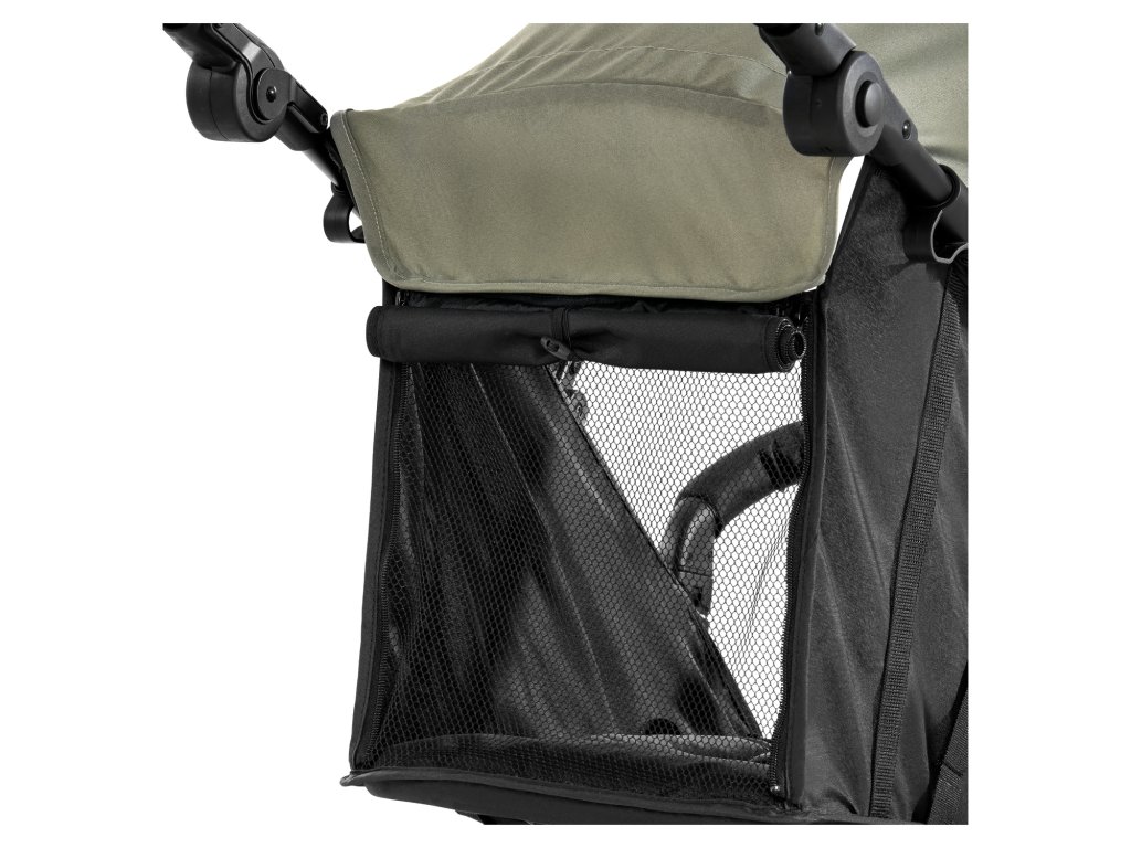 S větracím okénkem // V horkých dnech lze otevřít okénko v opěrce zad, čímž se odkryje síťová tkanina, která skvěle propustí vzduch a poslouží jako velké výhledové okénko. Aby se Vaše miminko cítilo pohodlně již od narození, je možné opěrku zad sklopit až do lehu, díky XL ložné ploše je kočárek možný využívat až do 4 let.