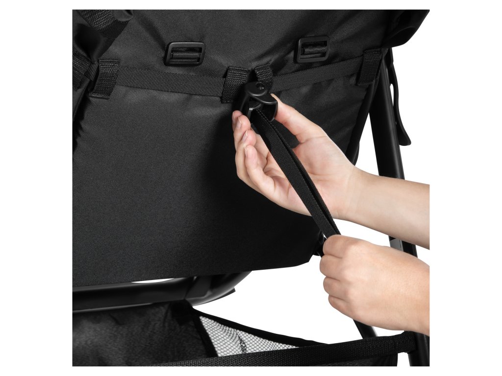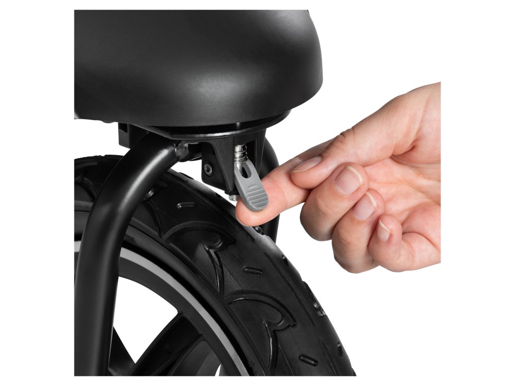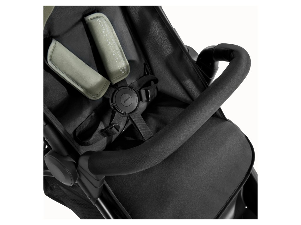 Abyste strávili Váš den komfortně, můžete posouvat polohu rukojeti o 30 cm a nastavit ji tak přiměřeně k Vaší výšce. Bezpečí Vaší ratolesti zajistí 5-bodový pás, brzda a přední madlo, které se při nastupování jednoduše vyklopí do strany.