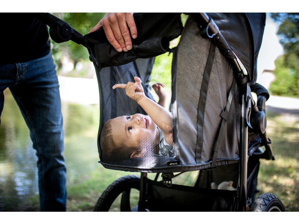 Aby se vaše dítě cítilo pohodlně od narození až do 4 let, poskytuje tento kočárek XL ložnou plochu a také velkou stříšku s UV ochranou 50+, která chrání před sluncem a deštěm. Kromě toho je Runner 2 extra odolný vůči zatížení. V horkých dnech jej můžete jednoduše otevřít, čímž se odkryje prodyšná síťová látka, která zároveň slouží jako výhledové okénko. Reflexní pásky na stříšce Vám a Vaší rodině na konci dne dopomohou k bezpečnému příjezdu domů. Svačinku na cesty můžete jednoduše zabalit do obrovského koše.