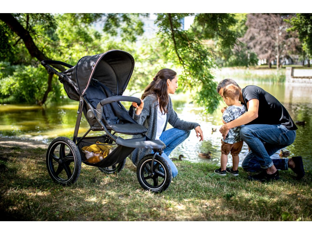 Robustní terénní kočárek // Vyrazte ven s tímto terénním fešákem za rodinným dobrodružstvím. Extra velká nafukovací kola zaručí jízdu s minimem otřesů. Kočárek díky otočnému kolu mistrovsky zdolá úzké zatáčky.