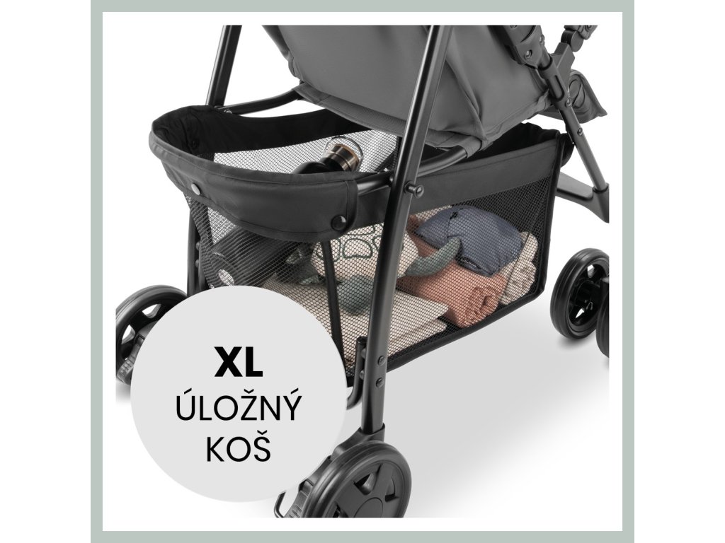 DOSTATEK ÚLOŽNÉHO PROSTORU DÍKY XL KOŠI // Hračky, tašku na plenky, svačinku, vše, co potřebujete na procházku jednoduše uložíte do prostorného XL koše, stejně tak i nákup. Prostorný úložný koš snadno pojme vše potřebné.