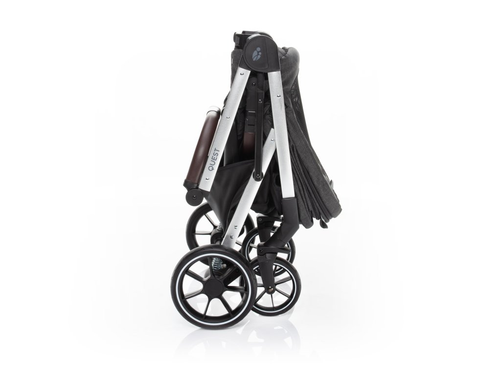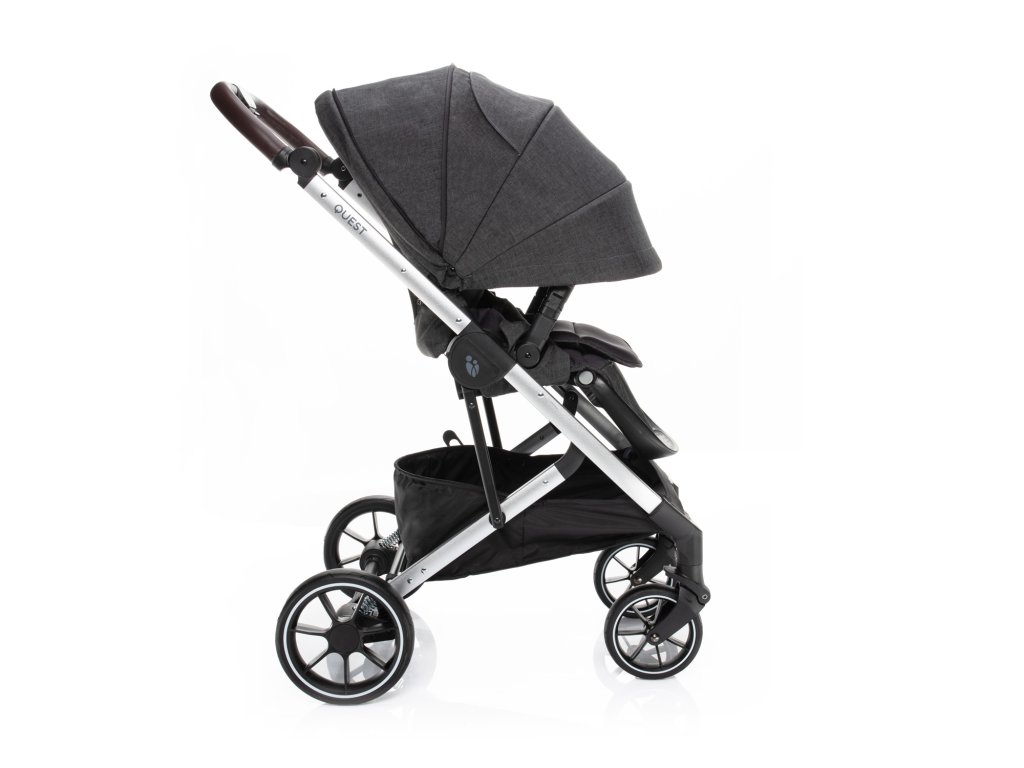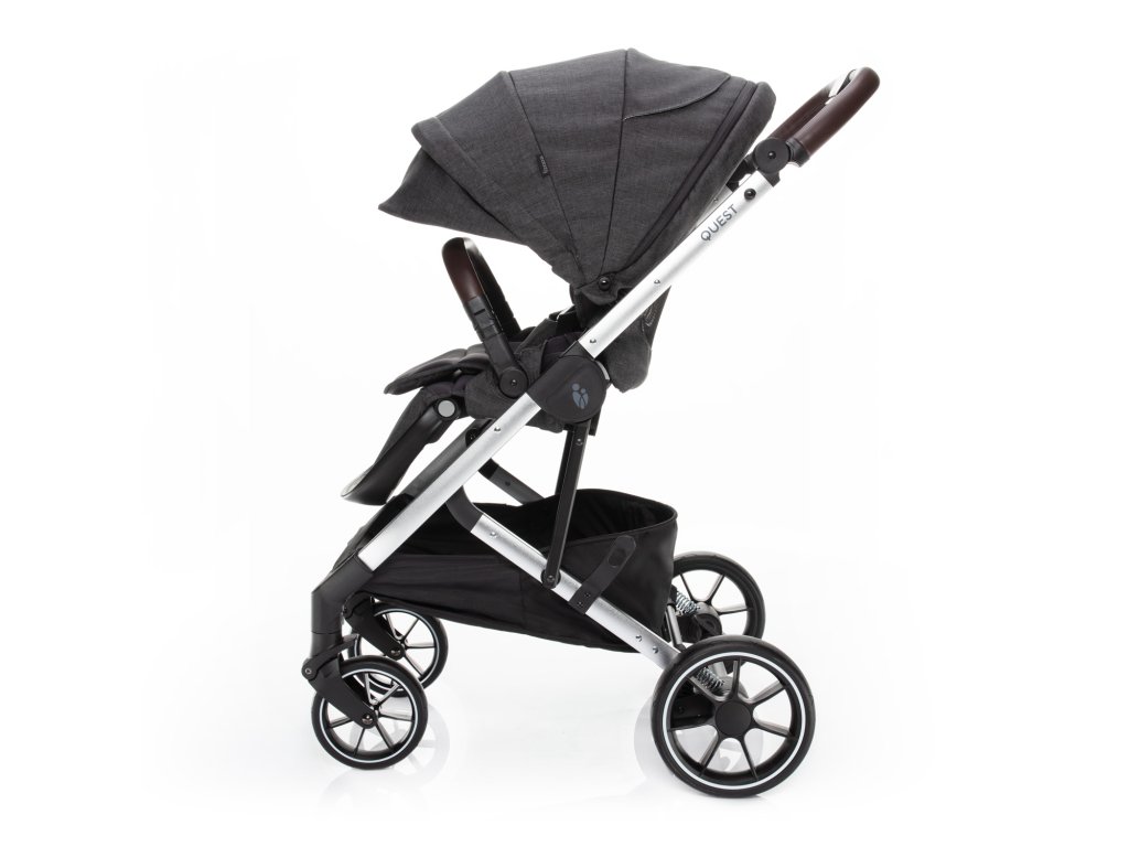 O virtuózní ovládání a lehkou manipulaci s kočárkem QUEST se postará nejen kvalitní odpružení a dostatečně veliká gumová kola, ale i výškově nastavitelná rukojeť a přední kolečka s automatickou aretací. Přičemž obě zadní kola lze současně zabrzdit brzdou s centrálním ovládáním. Zabráníte tak nechtěnému rozjezdu kočárku. Navíc, brzdový pedál je navržen tak, aby se sešlapával pouze shora. Tím si nepoškodíte svou obuv.