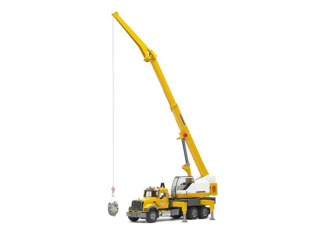 MACK Granite Liebherr autojeřáb je nádherný model amerického vozu MACK Granite s chromovými doplňky. Jeřáb v celé délce ční až do výšky 130cm!! Vysokou stabilitu vozidla mají na starosti nastavitelné opěrné nohy a může být také použit stabilizační segment umístěný v zadní části vozidla, který může být naplněn pískem. MACK Granite má nový lanový naviják s blokovácím zařízením a ochranou proti přetížení. Lano se dá vysunout až do délky 2m!! Výšku jeřábu je možné nastavit pomocí regulačního knoflíku se zamykacím mechanismem a tělo jeřábu je otočné o 360°. Kabina je zasklena vysoce odolným průhledným polykarbonátem a má otevíratelné posuvné dveře. Dále má sklopná zrcátka, otevíratelnou kapotu motoru, profilové pneumatiky a chromový vzhled nárazníku, předního rámu, zrcátek a výfuku. Vyrobeno v Německu, z kvalitních materiálů. Hlavní vlastnosti: výška až 130 cmlano vysunutelné až do délky 2mtělo jeřábu je otočné o 360°vyrobeno v NěmeckuSizing info