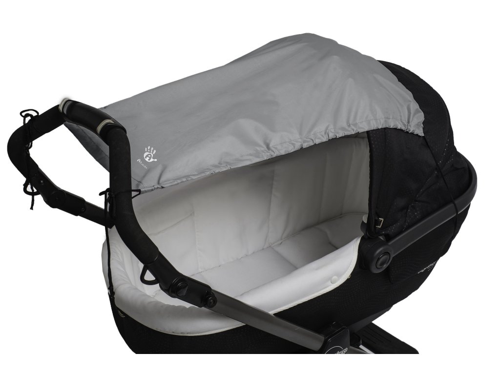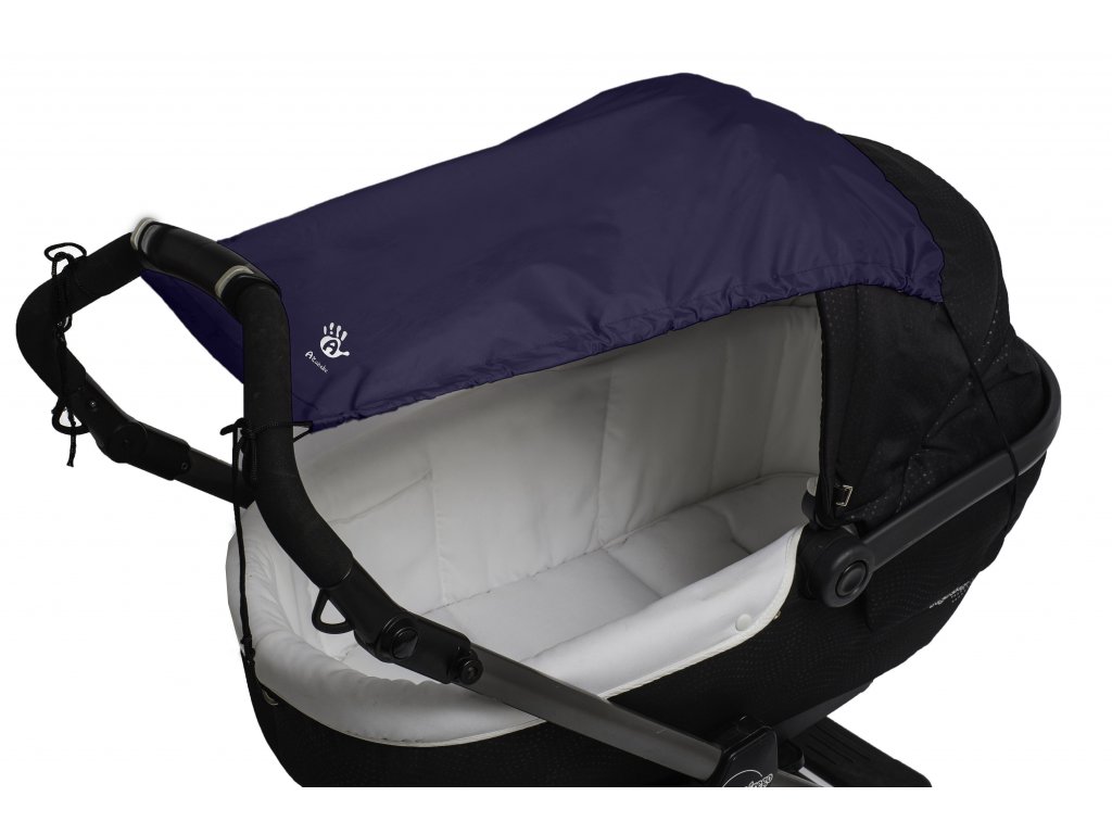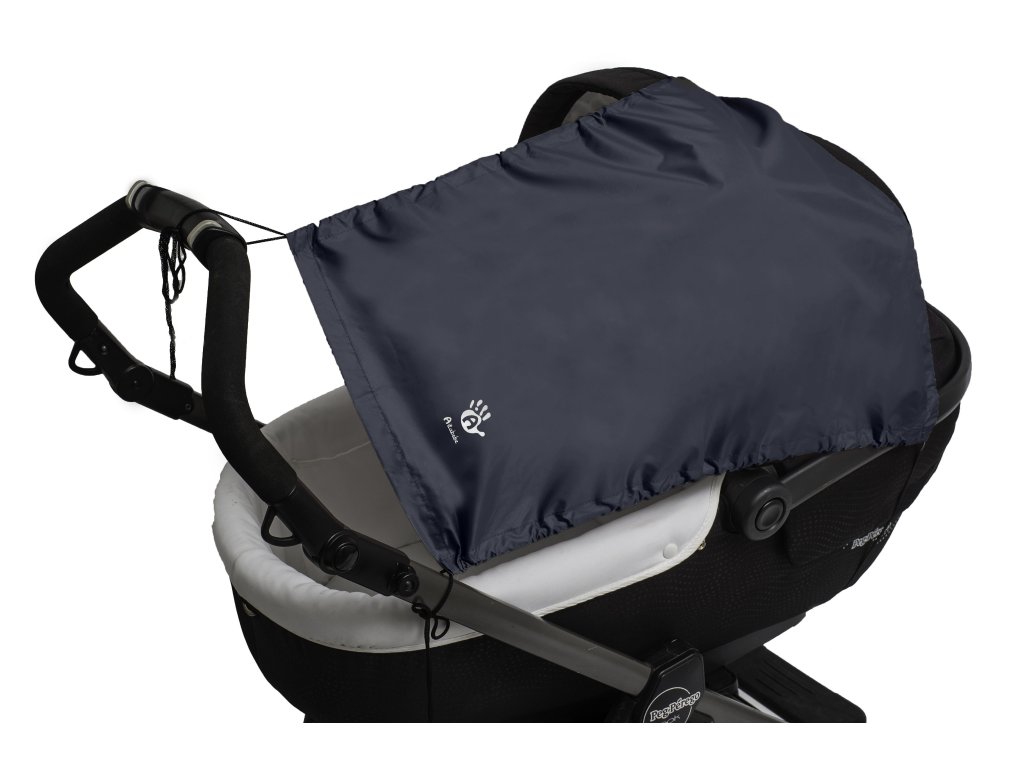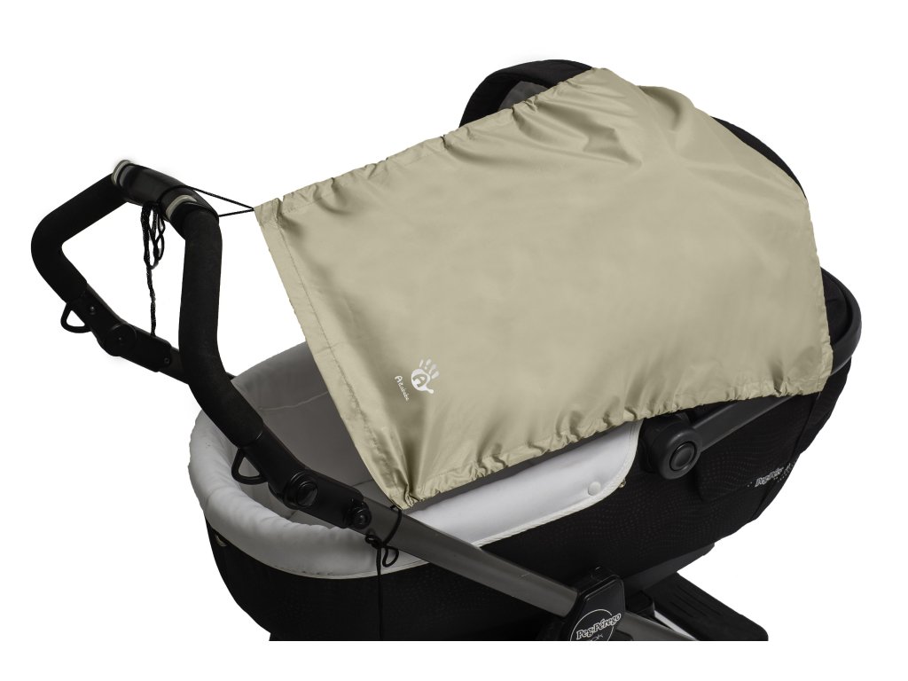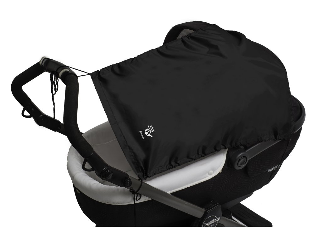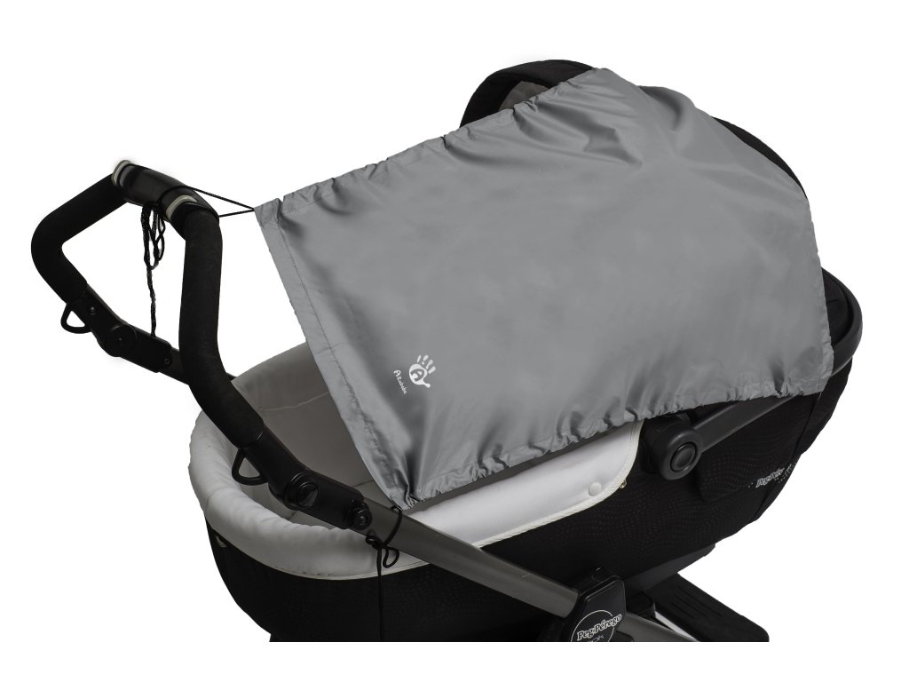 - Komfortní! Lze jednoduše upevnit: na rukojeť kočárku pomocí šňůry a na střeše gumovým páskem a pevně drží i při silném větru.