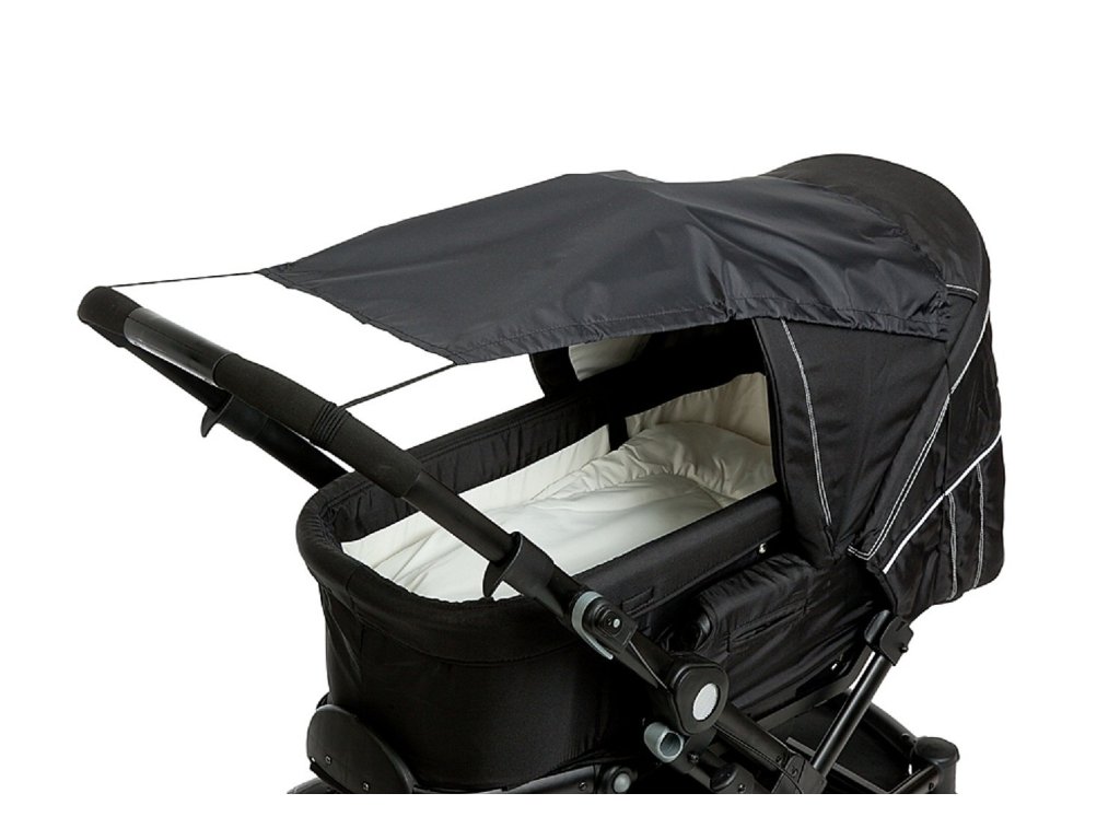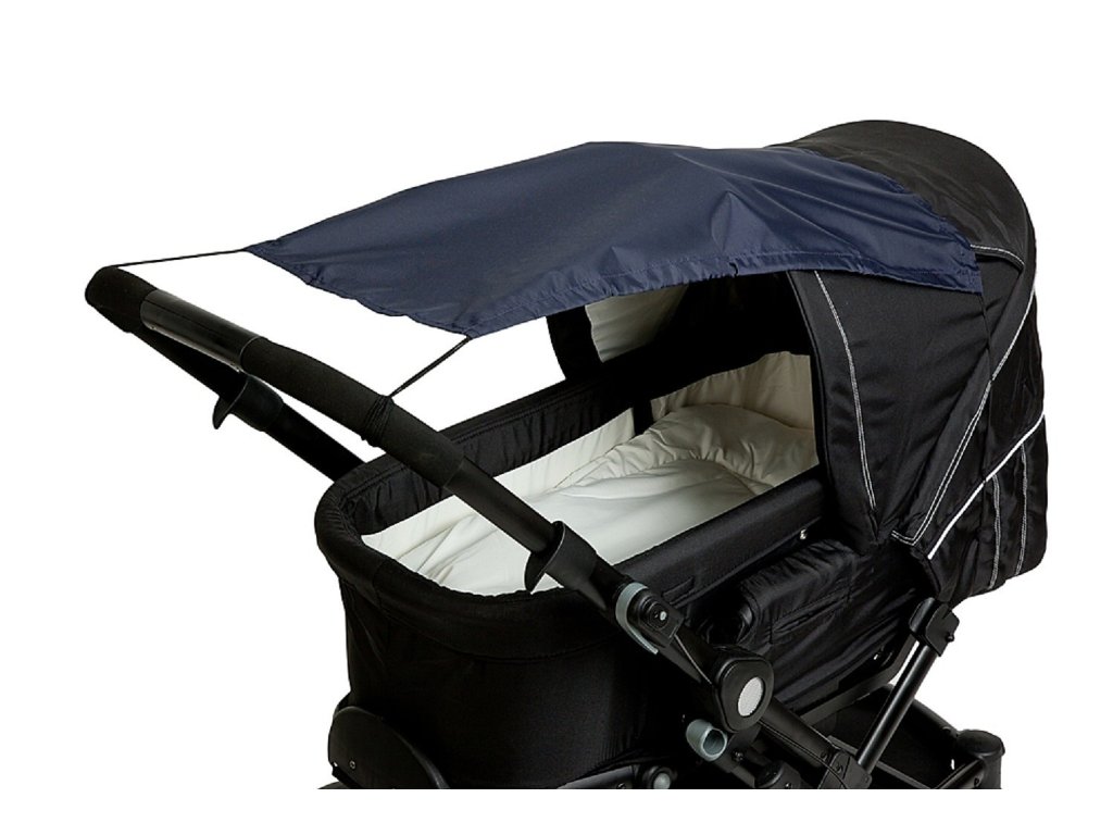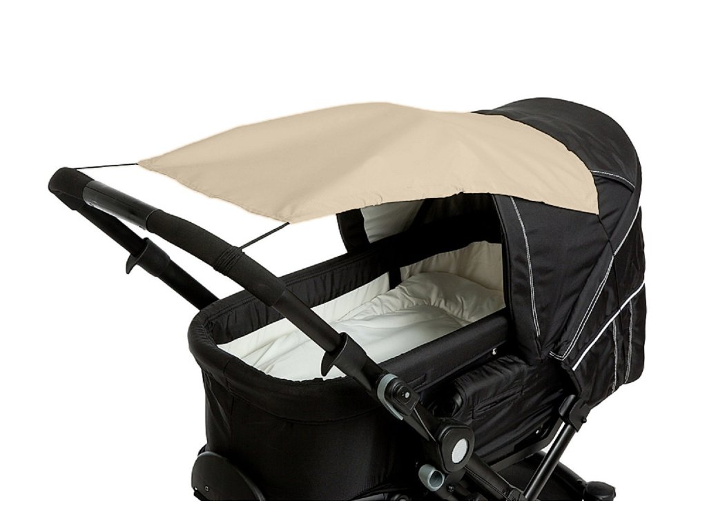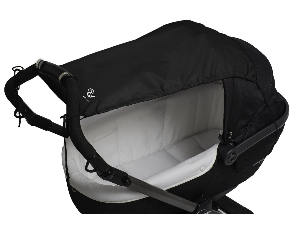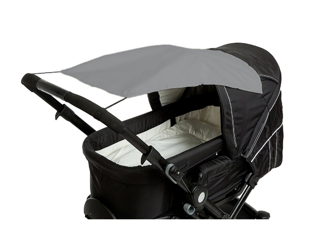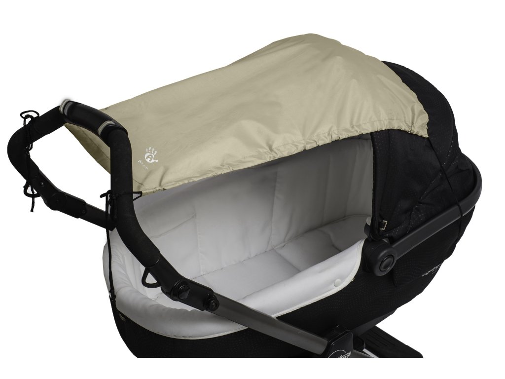 - Komfortní! Lze jednoduše upevnit: na rukojeť kočárku pomocí šňůry a na střeše gumovým páskem a pevně drží i při silném větru.