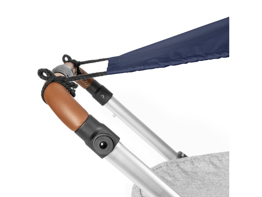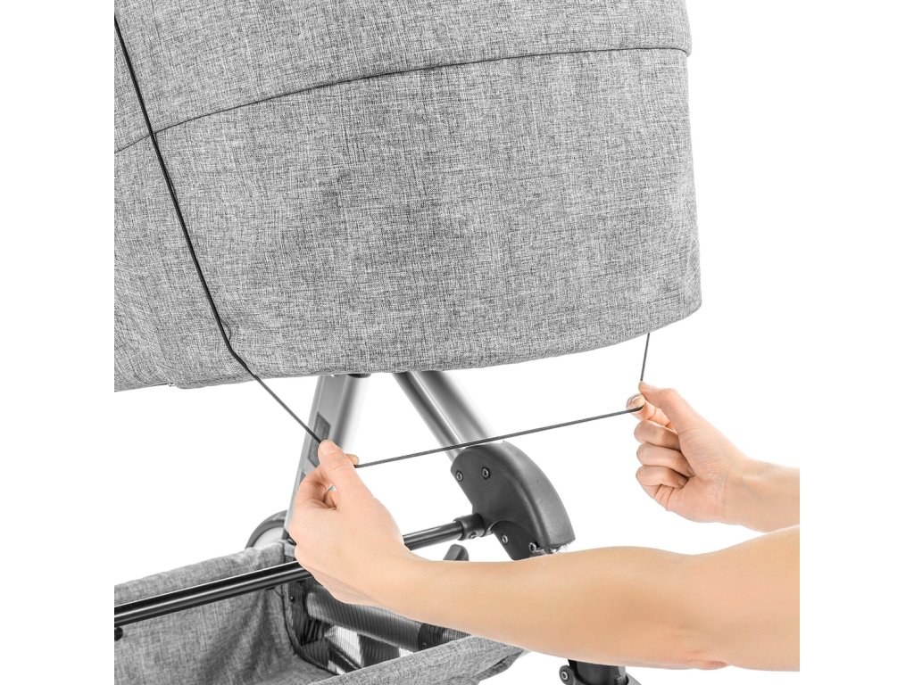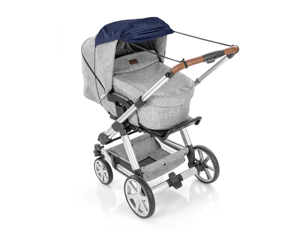 Celoobvodová guma a upevňovací popruhy umožňují flexibilní použití na kočárcích i protisměrných kočárcích. Pro připevnění se plachta položí přes stříšku, gumička se stáhne pod vaničku a popruhy se připevní k madlu.