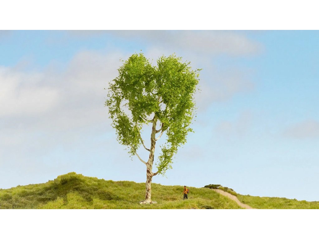 Listnatý strom péřový.Bříza péřová, opadavý listnatý strom, pochází z Evropy a roste převážně v bažinách a na svazích v nedotčené přírodě a divoké krajině. Díky své přizpůsobivosti a štíhlým, často větveným kmenem si zaslouží místo v sérii NOCH Master Tree. S výškou 21 cm tento s láskou navržený model zachycuje robustní, ale zároveň křehkou krásu břízy péřové a dodává vašemu modelovému kolejišti rozměr divokosti a přirozenosti.Naše detailní replika využívá až 40 ručně vyrobených drátků k znázornění jemného větvení tohoto speciálního druhu břízy. Jasně zbarvená kůra v kombinaci s jemnou zelení listů byla zde s precizností a řemeslným zpracováním znovu vytvořena.Každá ručně vyrobená bříza péřová od NOCH Master Tree představuje kousek divoké, nedotčené přírody a stává se tak poutavým prvkem v každém detailně propracovaném uspořádání. Nezbytnost pro všechny, kteří chtějí svému miniaturnímu světu dodat autentický a divoce romantický nádech.Poznámka: Modely NOCH Master jsou ideální nejen pro železniční modeláře všech rozchodů, ale také pro vytváření základen, dioramat a krajin. Velikosti jsou zajímavé např. pro vojenské modelářské modely v měřítku 1:35, 1:48 a 1:72. Vhodné také pro automobilové modeláře v měřítku 1:24, 1:32 a 1:45! Hlavní vlastnosti: jedná se o model, nejedná se o hračkuvhodné od 14 letSizing info