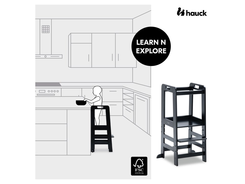 Díky vyvýšené poloze stupínku se může vaše dítě zapojit do běžných rodinných aktivit a pomáhat vám, bezpečně ve výšce očí. V duchu Montessori "Pomoz mi, abych to dokázal sám" se vaše dítě od útlého věku zapojuje formou hry, např. do vaření nebo pečení, a posiluje tak svou samostatnost, jazykový a sociální rozvoj i sebevědomí. Učící Věž pro batolata hauck má certifikát FSC®, což znamená, že bukové dřevo pochází z lesů s certifikátem FSC a šetrným lesním hospodářstvím.