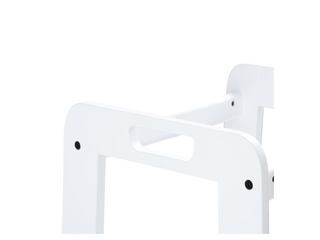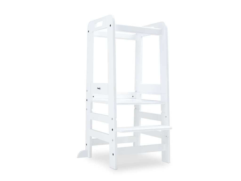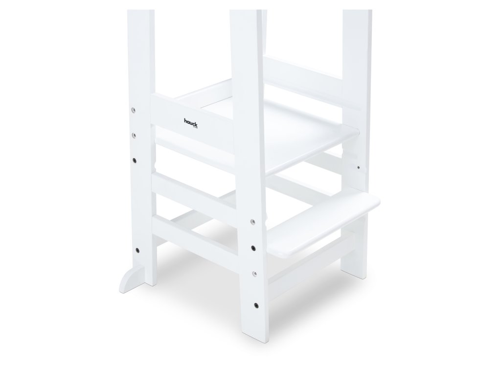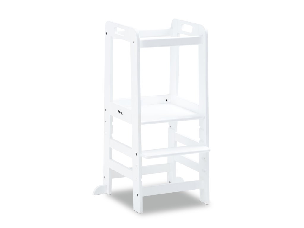V závislosti na velikosti vašeho dítěte můžete nastavit nožní desku kuchyňského pomocníka do tří různých výšek. Robustní a stabilní konstrukce umožňuje vašemu dítěti používat Montessori věž až do hmotnosti 40 kg, ať už v kuchyni, u jídelního stolu nebo u umyvadla v koupelně.