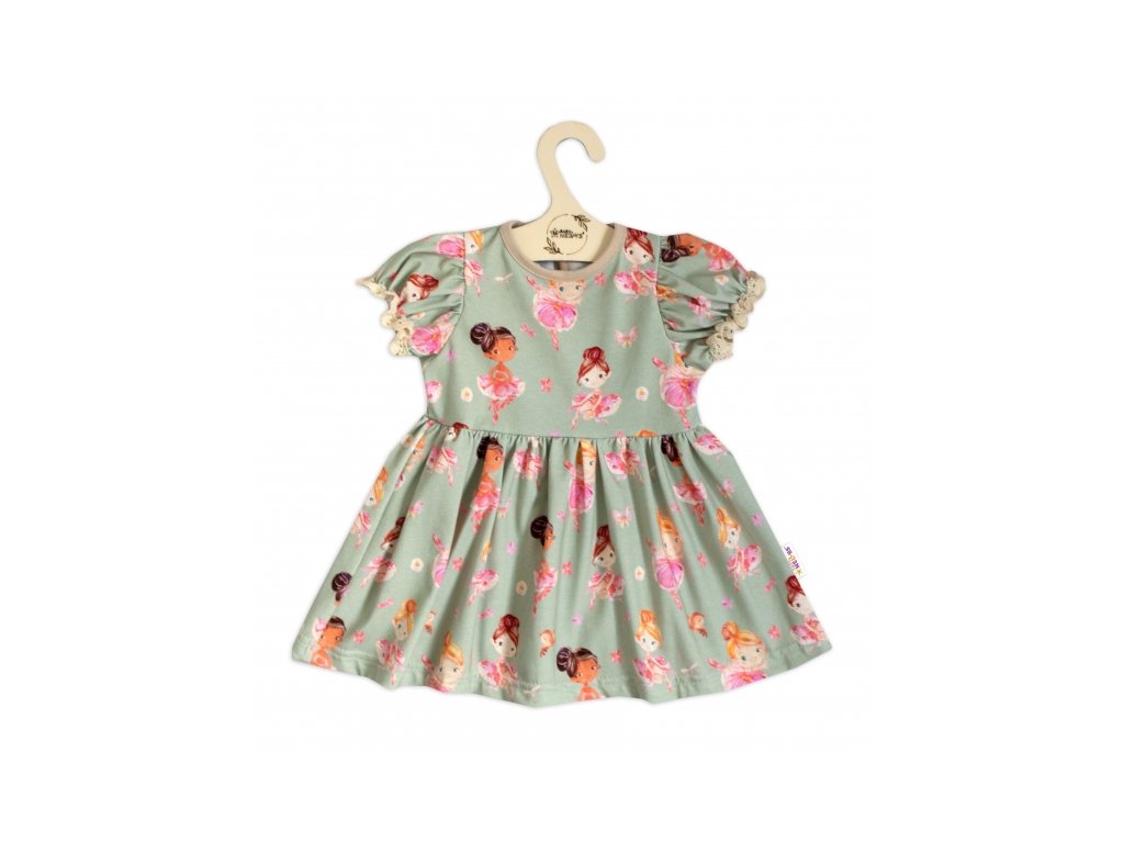 Bavlněné šatičky s ozdobným rukávkem Baletka, Baby Nellys, olivové
