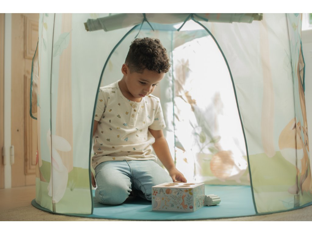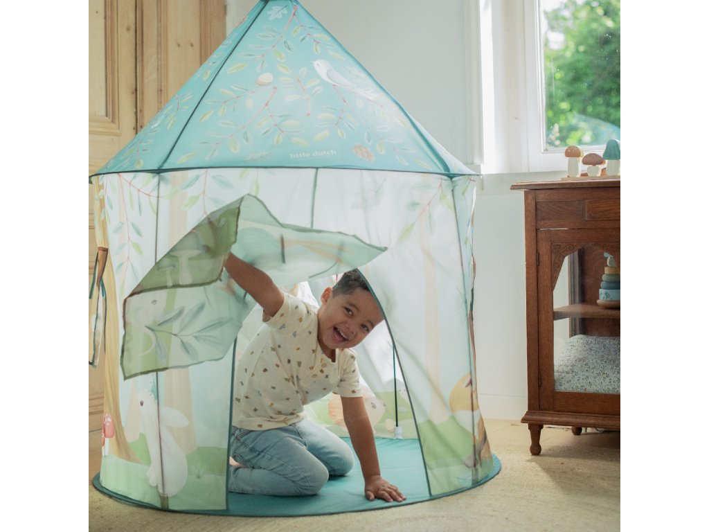 Úžasný stan je skvělým místem pro všechny děti, které mají rády schovávačky a svůj kouteček jen pro sebe. Stan s krásným potiskem motivů ze života v lese bude vděčným pomocníkem při hrách a rozvíjení fantazie vašich dětí. Stan je vybaven dvěma okénky a vchodovým závěsem. Stan je součástí designové kolekce hraček a doplňků Little Dutch Forest Friends, inspirované životem v lese. Určeno pouze pro použití v interiéru. Rozměry: 105 x 105 x 125 cm Výška stanu: 125 cm Hlavní materiál: 100% polyester Vhodné pro děti od 2 let.Doplňkové parametry