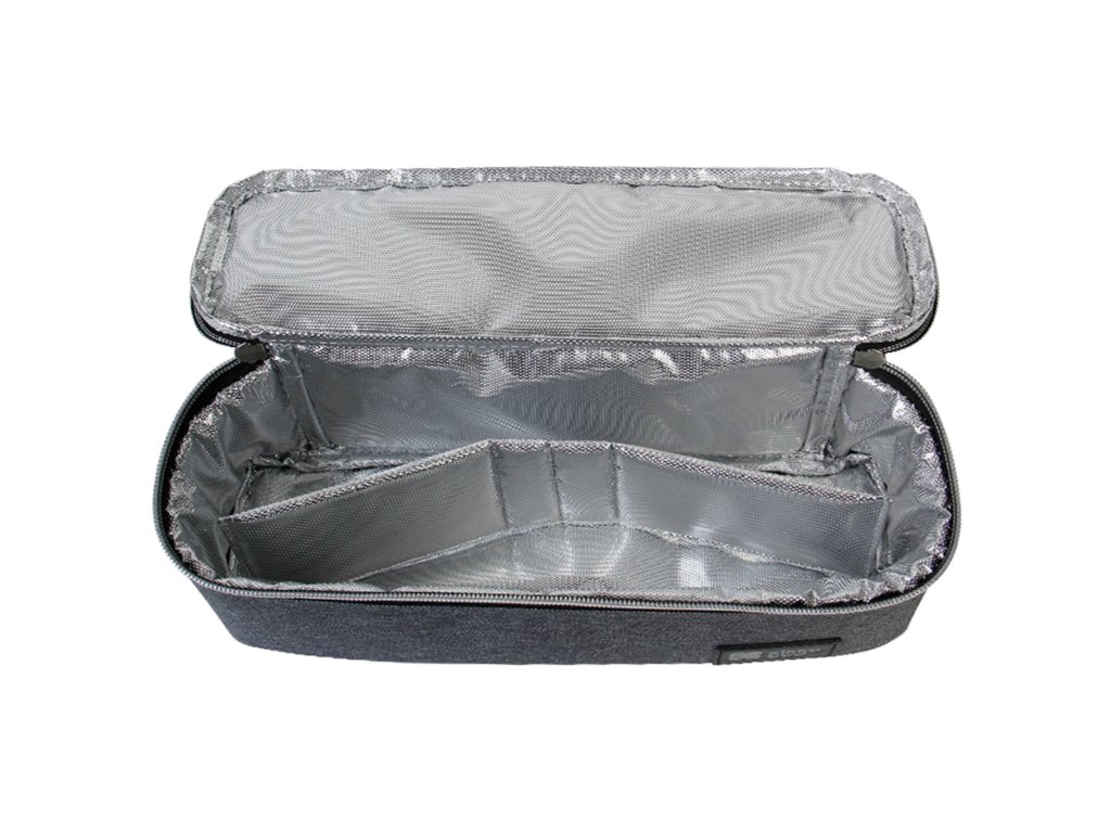 Termoizolační pouzdro pomáhá udržet příkrmy a svačinky teplé či chladné dle potřeby. Díky svému tvaru a vnitřnímu oddělovači je ideální pro tři skleničky o objemu 300 ml. Oddělovač je možné z pouzdra dle potřeby vyndat. Držadlo usnadňuje přenášení pouzdra. Rozměry: 28 x 10 x 8 cmDoplňkové parametry