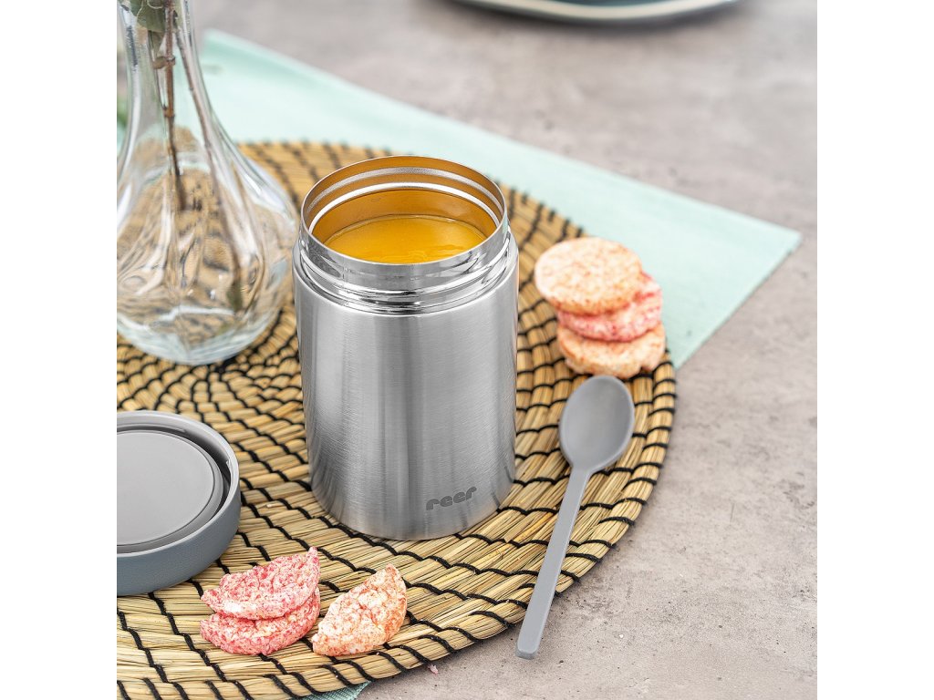 Termoska má vakuově izolovaný dvojitý plášť, který zaručuje, že jídlo uvnitř zůstane teplé až 6 hodin.