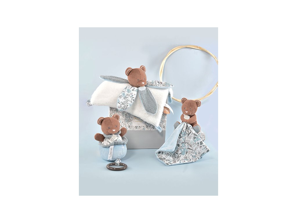 Plyšový medvídek s dečkou doprovází miminko od narození, aby mu přinesla hebkost, pohodlí a objetí. Ultra jemná a uklidňující je strana se svěžím bavlněným potiskem vytvořeným našimi stylisty. Rozvíjí smysly a zvědavost. Je to velmi pěkný dárek k Vánocům nebo k oslavě narození miminka. Prezentováno v pěkně ladící krabičce. Údržba: Perte v lázni na 30°. Přirozené nebo nízkoteplotní sušení. Hlavní vlastnosti: měkký plyš, prémiový materiálmalý formát vhodný pro novorozencev souladu s evropskými normami CEkrásná dárková krabičkavhodné od narozeníSizing info