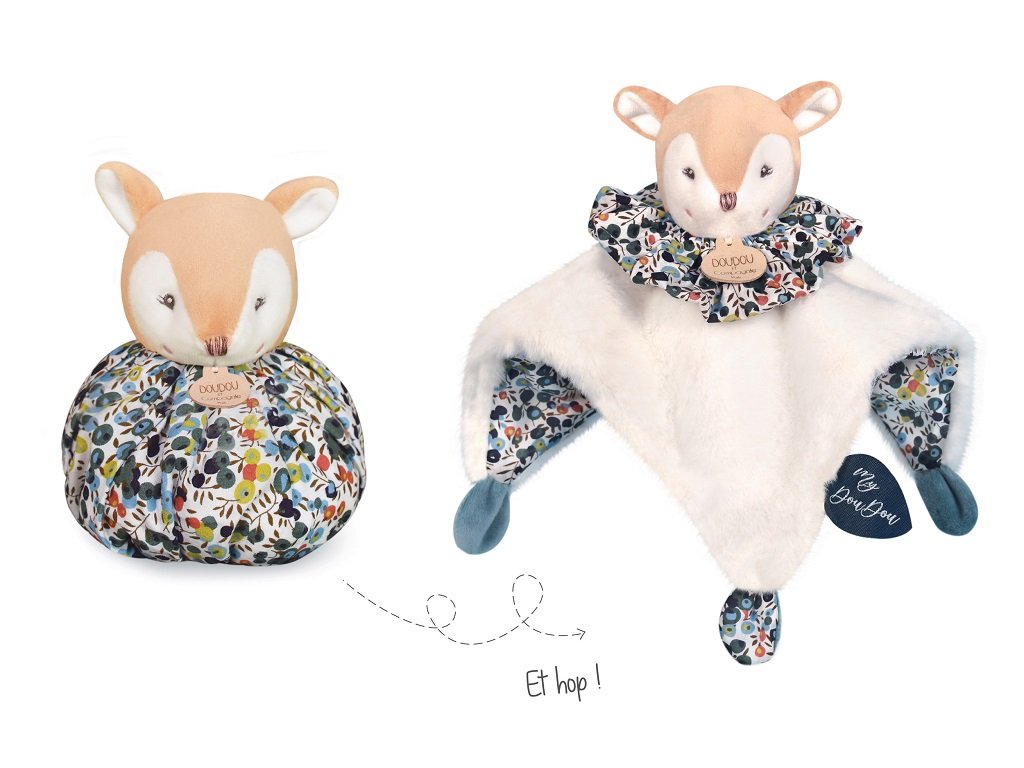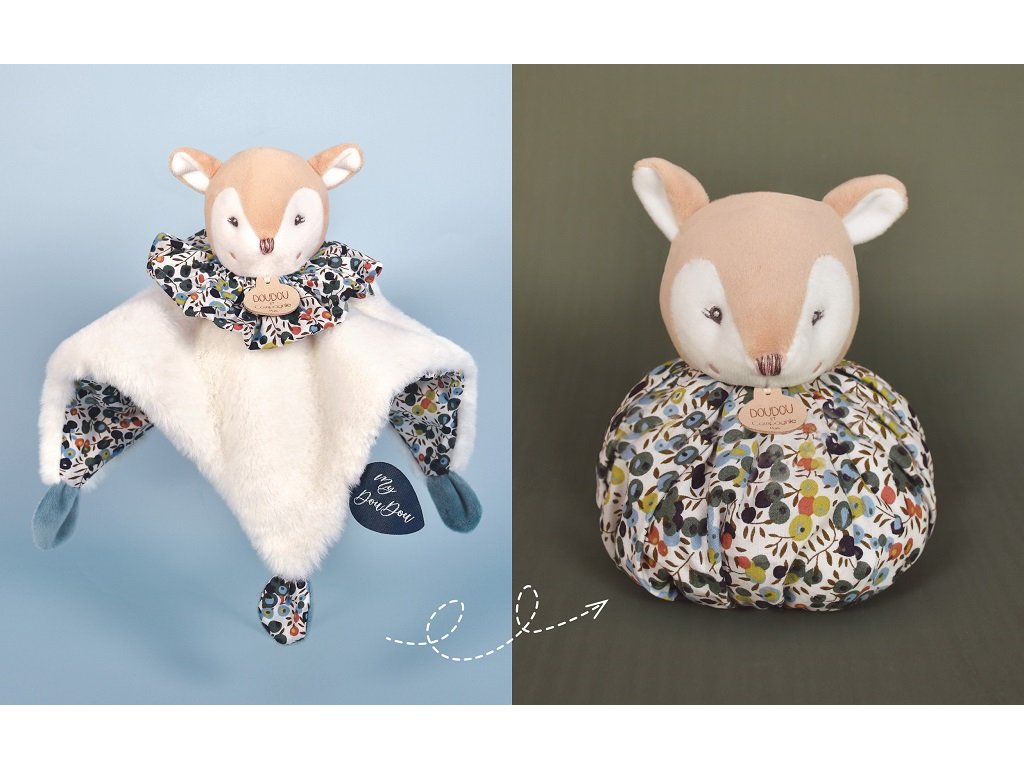 Skutečně pohodlná, měkká hračka, která se promění v heboučkou přikrývku, nebo v plyšový míč na hraní. Tento praktický muchláček je vhodný na hraní doma nebo i při procházce. Pro miminko bude mít především uklidňující efekt. Díky jemným harmoniím trendy barev a směsím velmi jemných materiálů bude tato srnka ideálním a lákavým společníkem. Údržba: Perte v lázni na 30°. Přirozené nebo nízkoteplotní sušení. Hlavní vlastnosti: měkký plyš, prémiový materiálexkluzivní a inovativní konceptv souladu s evropskými normami CE3v1 - hračka, přikrývka, míčekideální jako dárek k narození miminkaSizing info