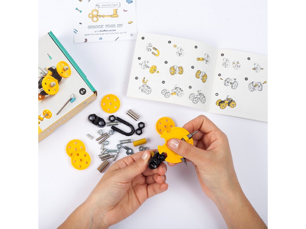 Vícegenerační stavebnice OffBits zabaví lidi všeho věku, hra s nimi je kreativní a edukativní. Jsou založeny na sadách DIY – postav si sám. Tyto sady obsahují standardní komponenty a konektory, alespoň jednu pestrobarevnou postavičku robota, figurínu nebo vozidlo s unikátní osobností nebo schopností, také speciální montážní klíč SuperTool™. Můžete upcyklovat různé materiály z vaší domácnosti nebo kanceláře a integrovat je do stavebnice, váš výtvor tak bude originální!