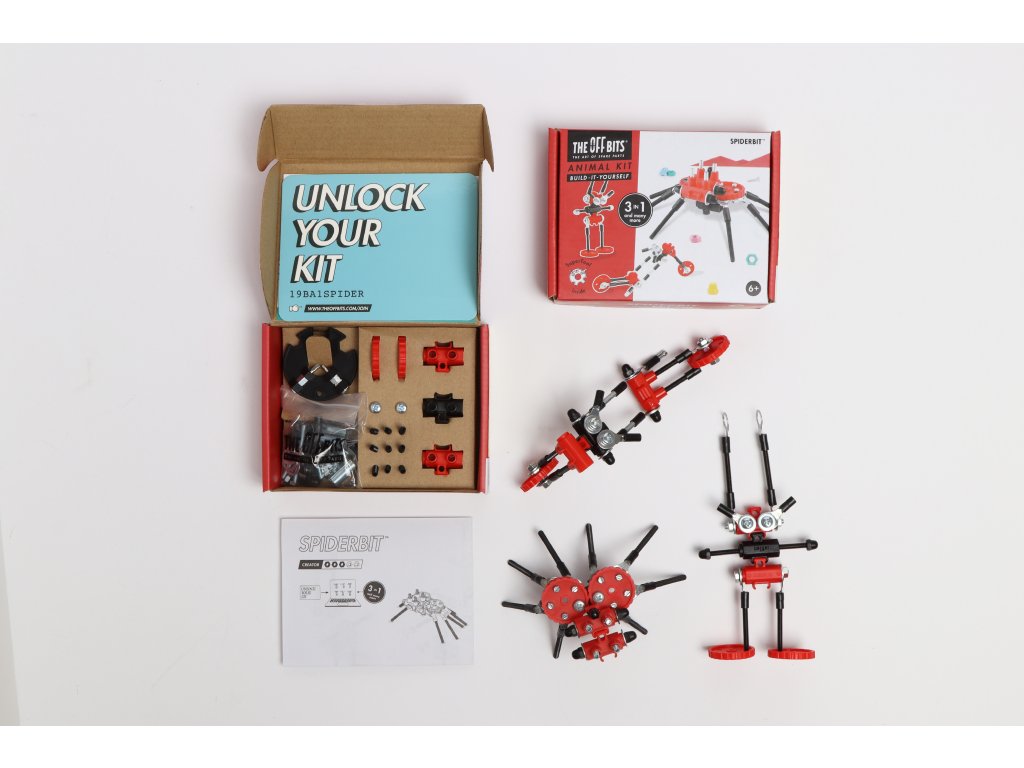 Slídit a plížit se! PavoukBit je strašidelné stvoření. Tento neuvěřitelný hmyz je tvořen řadou barevných matic, šroubů a tvarovaných kousků. Popusťte uzdu své fantazii. Tato sada umožňuje vytvoření tří modelů s dalšími nekonečnými možnostmi pro vaše vlastní kreativní nápady. Jedná se o hračku, která pomáhá mladým lidem růst v oblastech vědy, technologie, inženýrství, umění a matematiky. Hračky OffBits také podporují rozvoj jemné motoriky, prostorové představivosti, řešení problémů a nápadité hry. Co můžete postavit:PavoukaBit, robotaBit a motorkuBit plus nekonečné množství jedinečných výtvorů, které můžete postavit pomocí své fantazie. Máte kolem sebe karton, šroubky nebo jiné zábavné materiály? Vylepšujte s předměty každodenní potřeby a vytvořte také své vlastní jedinečné vynálezy. Hlavní vlastnosti: obsahuje nářadí pro sestavení stavebnicekompatibilnost s každodenními předmětyrozvoj kreativity, jemné motoriky i logického myšlenívhodné od šesti let3 v 1návod je součástíSizing info
