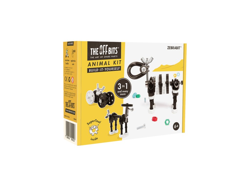 Pást se se svými kamarády! ZebraBit je elegantní stvoření se sortimentem barevných matic, šroubů a tvarovaných kousků, je elegantní i odvážná. Popusťte uzdu své fantazii. Tato sada umožňuje vytvoření tří modelů s dalšími nekonečnými možnostmi pro vaše vlastní kreativní nápady. Jedná se o hračku, která pomáhá mladým lidem růst v oblastech vědy, technologie, inženýrství, umění a matematiky. Hračky OffBits také podporují rozvoj jemné motoriky, prostorové představivosti, řešení problémů a nápadité hry. Co můžete postavit:ZebruBit, PoodlaBit, CooperBit plus nekonečné množství jedinečných výtvorů, které můžete postavit pomocí své fantazie. Máte kolem sebe karton, šroubky nebo jiné zábavné materiály? Vylepšujte s předměty každodenní potřeby a vytvořte také své vlastní jedinečné vynálezy. Hlavní vlastnosti: obsahuje nářadí pro sestavení stavebnicekompatibilnost s každodenními předmětyrozvoj kreativity, jemné motoriky i logického myšlenívhodné od šesti let3 v 1návod je součástíSizing info