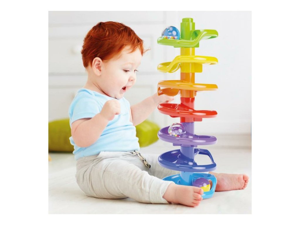 Sledujte kuličku, jak se po spirále kutálí dolů! Nová kuličková dráha pro nejmenší vám umožní stavět vysoké věže a pouštět z nich barevné kuličky, které cestou dolů chrastí a cinkají. Kuličky jsou velké, bezpečné a dobře padnou do dlaní i malým dětem. Jsou také plné barevných korálků, aby mohly poskytovat stimuly pro zrak i sluch. Věže se skládají ze 7 snadno sestavitelných částí a pomalé kutálení kuliček plně upoutává pozornost dětí od 1 roku do 4 let, které si při hře zdokonalují a rozvíjejí jemnou motoriku i koordinaci ruka-oko. Zároveň tato zábavná hračka přispívá k rozvoji smyslového vnímání i poznávacích schopností a učí chápat příčinu a následek. Oceněno titulem "Správná hračka". Obsah balení: 7 částí věže v 7 barvách 3 kuličky naplněné chrastivými korálky Hlavní vlastnosti: rozvíjí jemnou motoriku, tvořivost, fantazii a logicko-kombinační myšleníbalení obsahuje 10 dílkůpro děti již od 1 roku Označení „Správná hračka“ je udělováno produktům, které cílí na děti předškolního věku a vynikají zejména výchovnými kvalitami, ale i vysokým standardem zpracování, komfortem používání a estetickou úrovní. Záměrem tvůrců ocenění je poskytovat vodítko a oslovovat rodiče i pedagogy, kteří chtějí ovlivňovat směřování nabídky a za prvořadý považují zdravý osobnostní rozvoj dětí. Tím chtějí tvůrci podněcovat k rozšiřování a vývoji nových hodnotných hraček či her. Označení je udělováno od roku 1994 a je společným projektem Sdružení pro hračku a hru, Asociace hračka Unie výtvarných umělců ČR a Asociace předškolní výchovy. Tato sdružení společně s Uměleckoprůmyslovým muzeem v Praze a Městským muzeem v Kamenici nad Lipou udělují ocenění při příležitosti festivalu Hračkobraní konajícího se každoročně od roku 2006 na zámku v Kamenici nad Lipou, kde můžete mimo jiné zhlédnout stálou expozici všech oceněných hraček.Sizing info