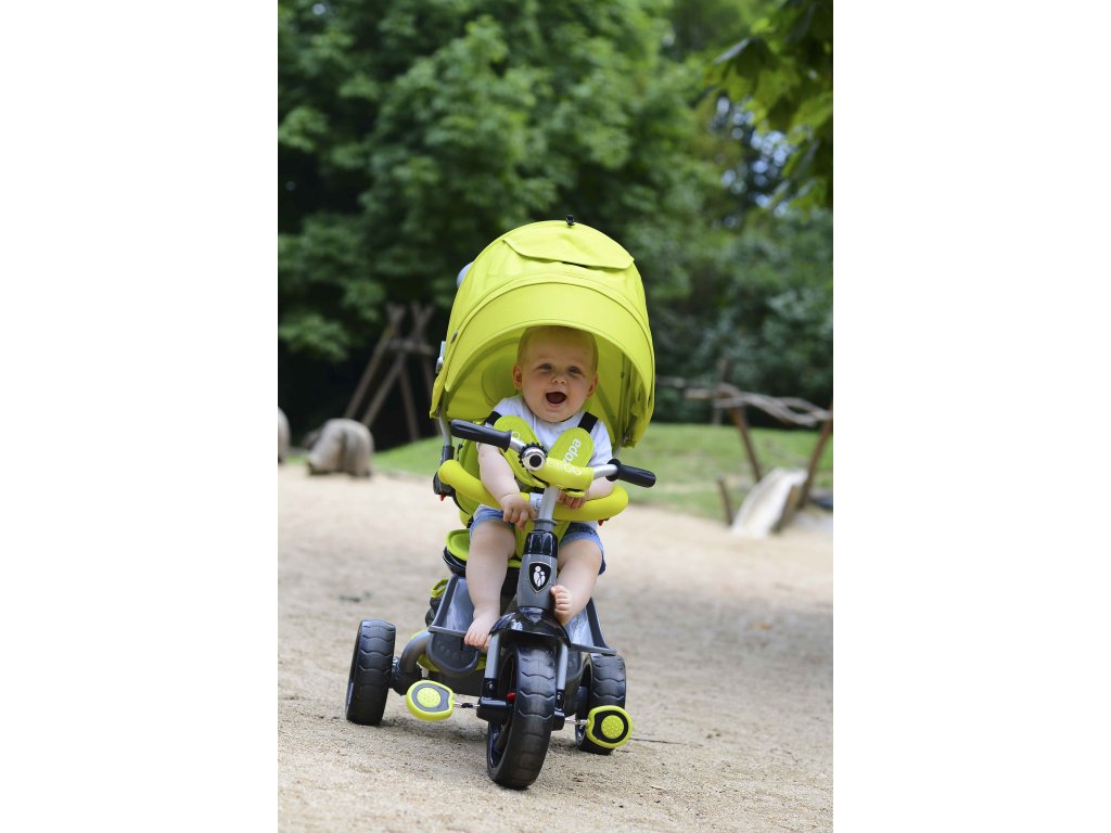 - Demontáž sluneční stříšky, hrazdy, přední opěrky a pedálů umožní dítěti lepší požitek z jízdy.