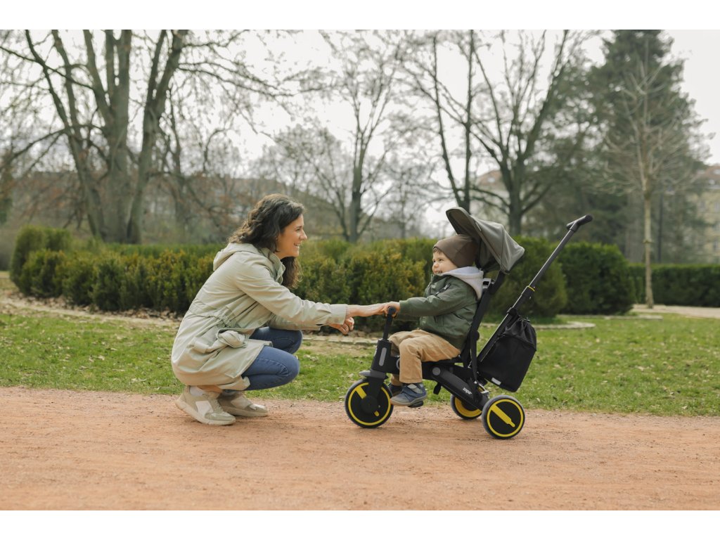 nastavitelné vodící tyči a funkci vypnutí řídítek plně nahradí kočárek a dítě si