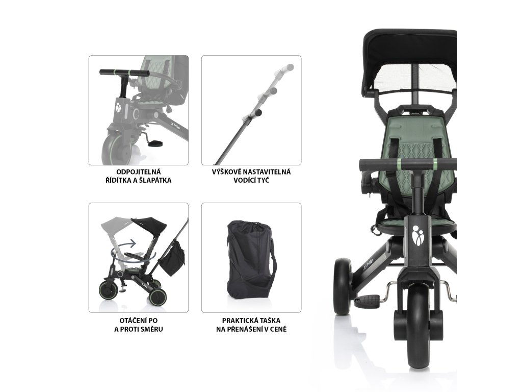 modelu tříkolky X Trike je zabezpečení zajištěno 5bodovým pásy, nastavitelnou