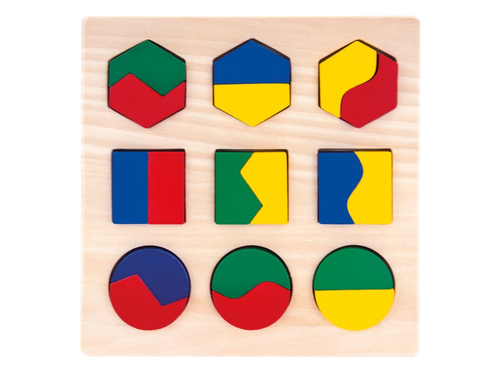 Dřevěná barevná skládanka pro děti, které se seznamují s geometrickými tvary. Skvělé pro cvičení představivosti a schopnosti kombinovat. Hračka je robustní, vyrobena ze silné překližky a masivního dřeva. Hlavní vlastnosti:základna a 18 dílkůrobustní dřevěné provedeníSizing info
