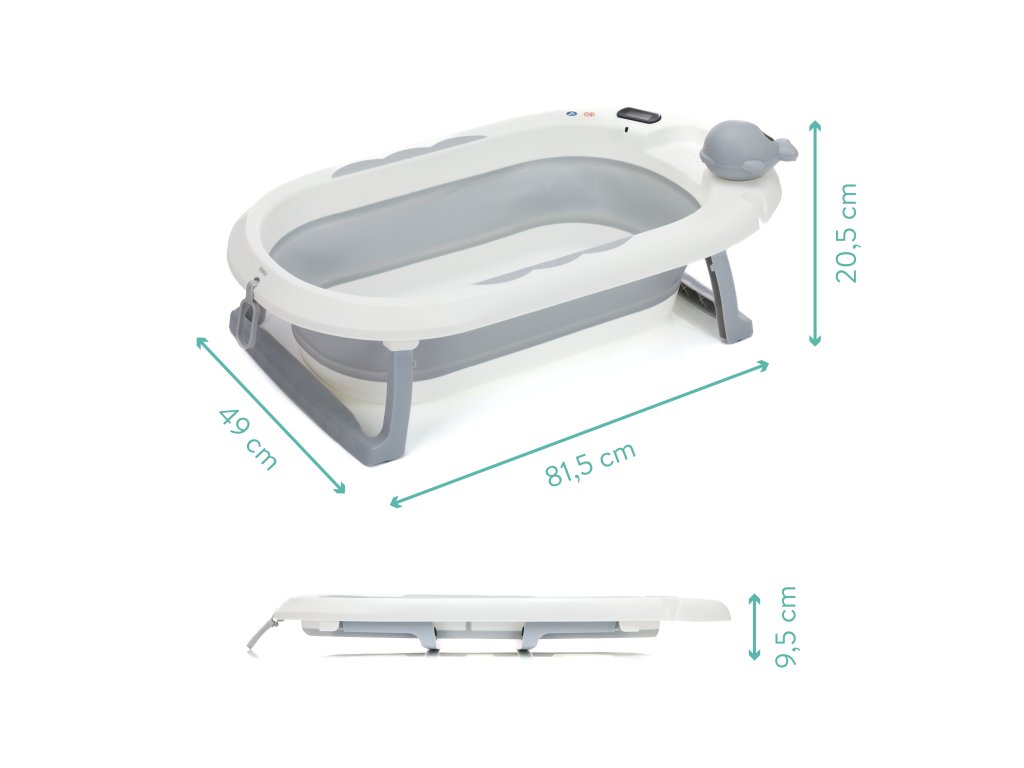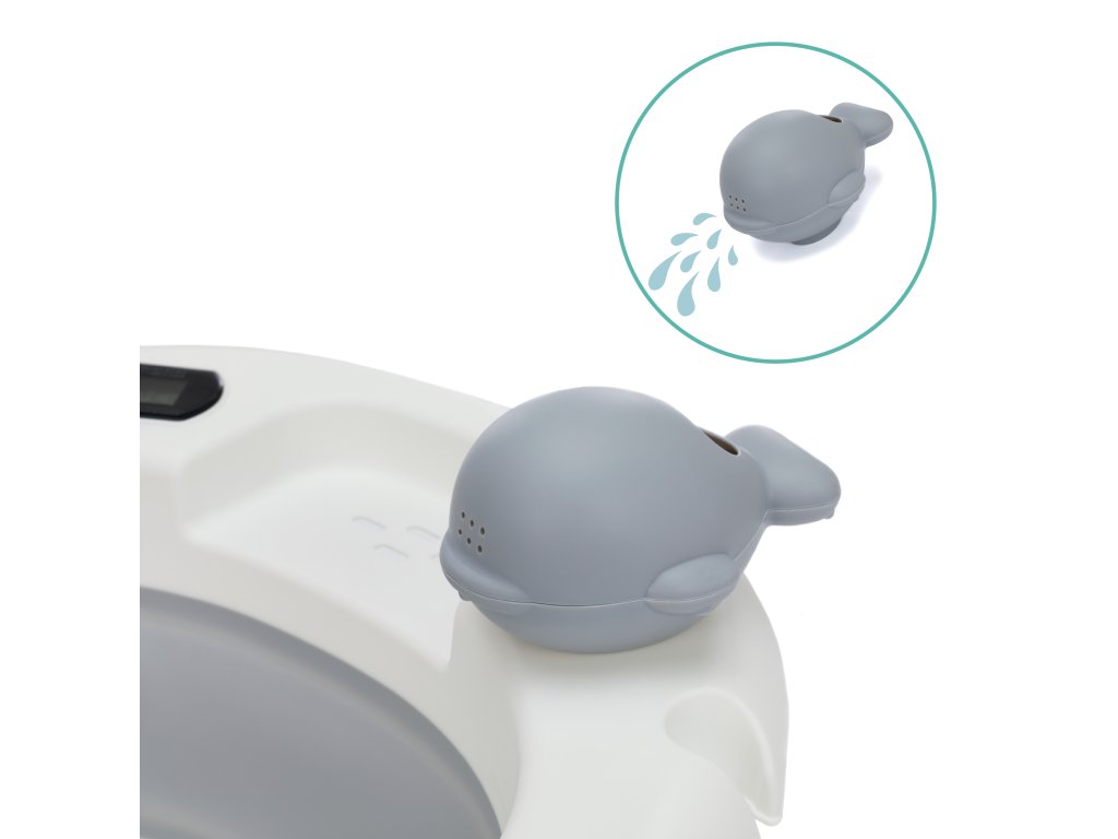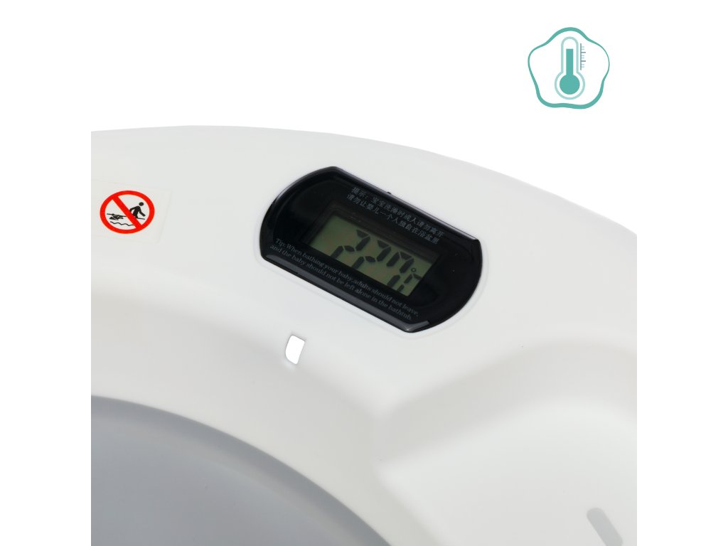Digitální teploměr umožňuje snadnou kontrolu teploty vody, aby voda ve vaničce měla vždy ideální teplotu. Protiskluzové nožičky zajišťují stabilitu a bezpečnost během koupání, zatímco roztomilá hračka do vany poskytuje další zábavu.